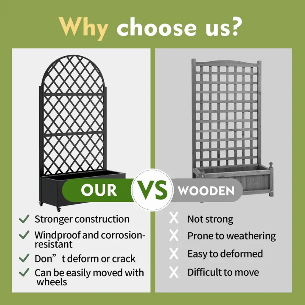 Versatile Design--This metal planter with trellis serves triple purposes as an elevated garden bed for flowers/plants, a sturdy trellis for climbing flora, or a stylish privacy planters for patio living spaces. Its adaptable structure makes it the ultimate gardening solution for diverse needs.