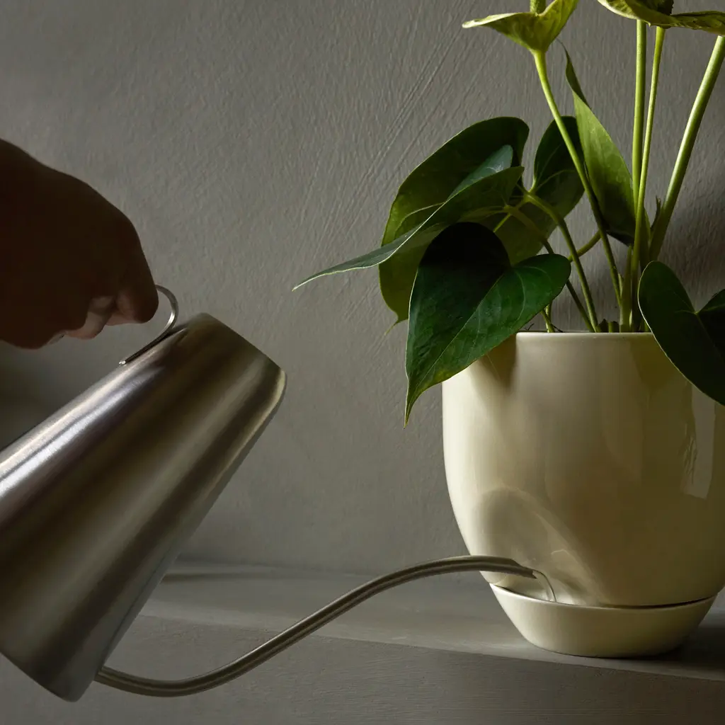 Ensuring hassle-free plant care, this self-watering pot by Menu Design now Audo Copenhagen allows the plant to draw water to its roots as needed. Simply fill the saucer with water and let the nylon wick work its magic. Features
