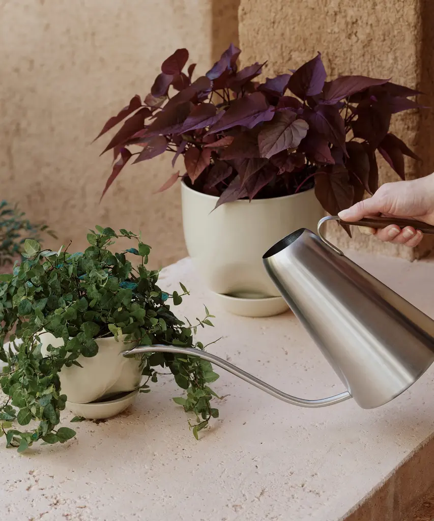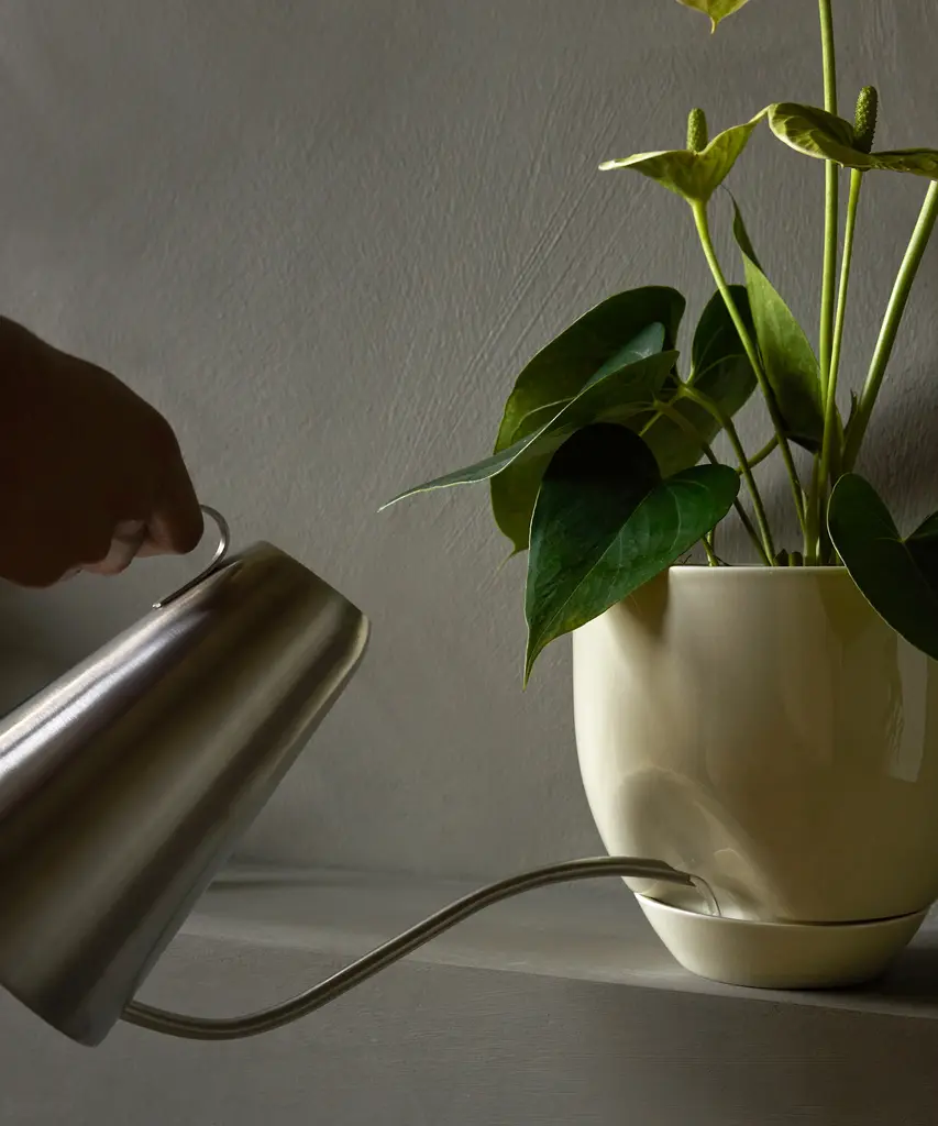 Ensuring hassle free plant care, this self-watering pot allows the plant to draw water to its roots as needed. Simply fill the saucer with water and let the nylon wick work its magic. For indoor use only.
