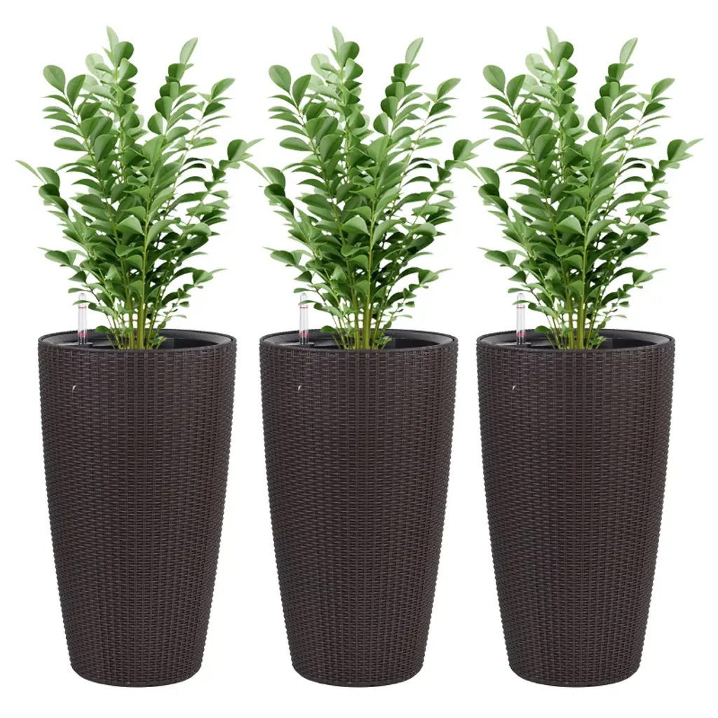 Description: Product Name:Indoor/Outdoor Modern The appearance is made of imitation rattan Design Planter,22.5 inch Black Plastic Large Plant Pot With Automatic Watering System for Home and Garden (Black, 22.5 inch - 2 Pack) Main Color:Brown Main Material:Polypropylene