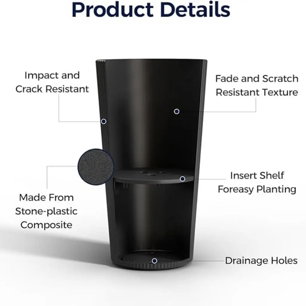 Infurnic Planters, Outdoor Flower Pot, Tall Planters With Drainage Hole, For Gardens, Patios, Or Indoor Spaces, 2Pcs, Black, 13"*13"*23.6"