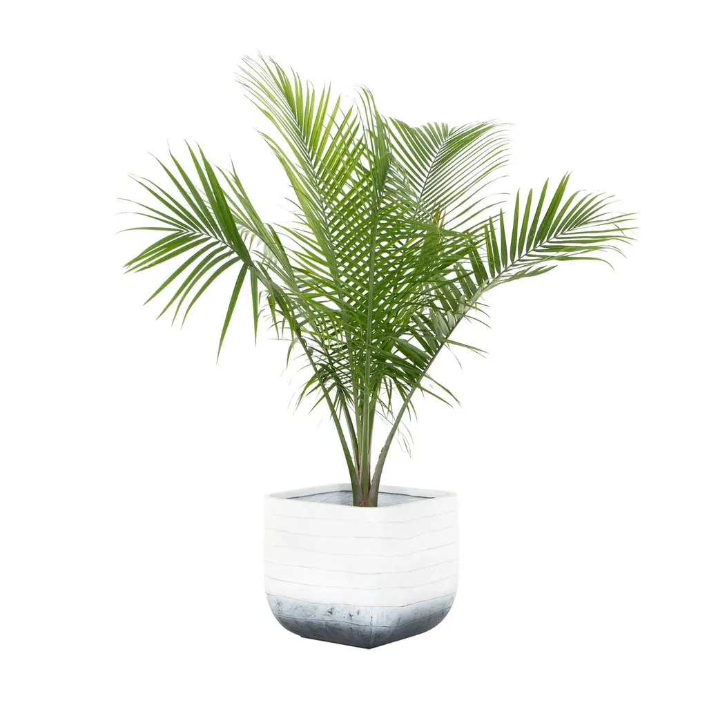 Gray details, rounded corners, and a curved base give this square planter artisanal allure. Because it's made of concrete, the planter can used outdoors as well as inside.