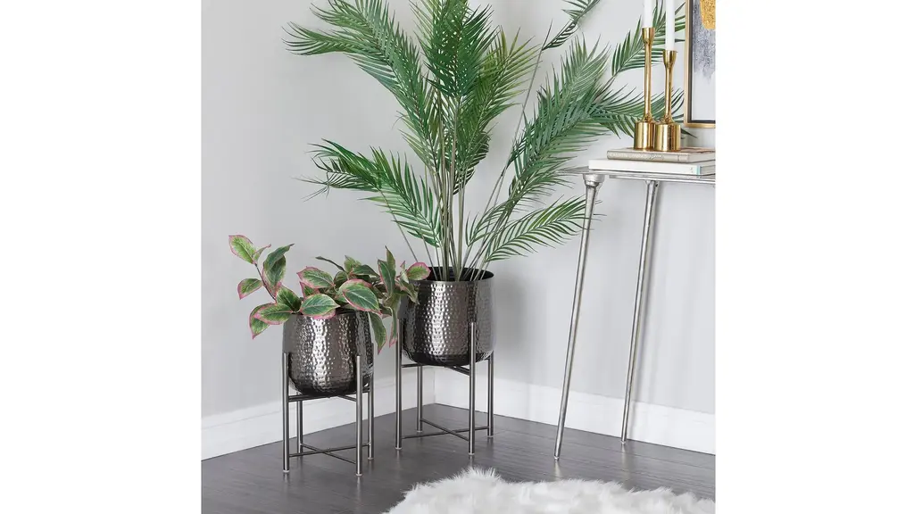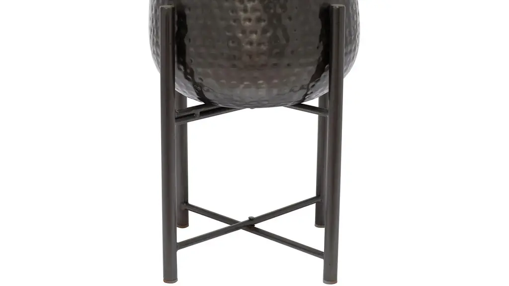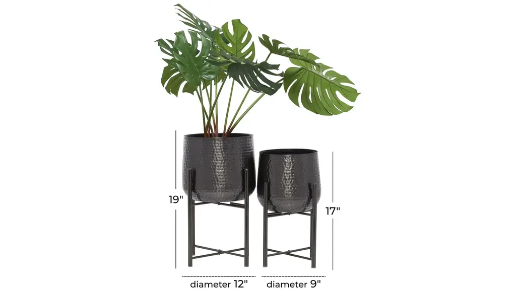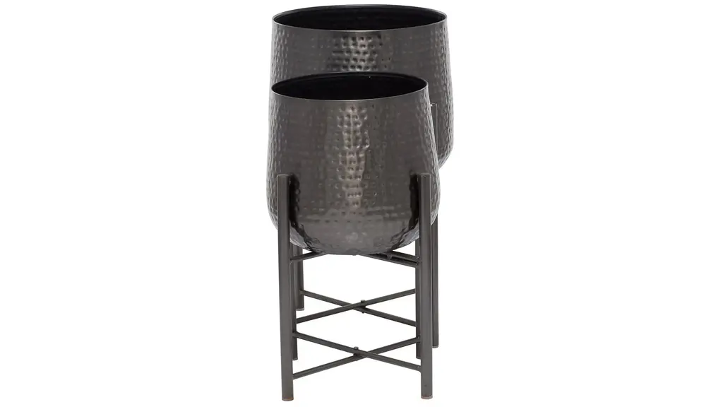 The Ivy Collection CosmoLiving by Cosmopolitan Black Metal Planter Set of 2 is a set of modern style planters that brings tranquility to your space and adds a bundle of charm to your home. A smart chic style inspired living space knows how important mixing and matching is, especially when it comes to adding some greenery in your space. Enhance the mood and the look of your room with some plants in this beautifully designed planter. The metal pots of these accent pieces are securely mounted on metal stands that provide stability with x-shaped supports. Suitable for indoor use. Planters do not have drainage holes. This set comes with 2 black metal planters. Modern theme.