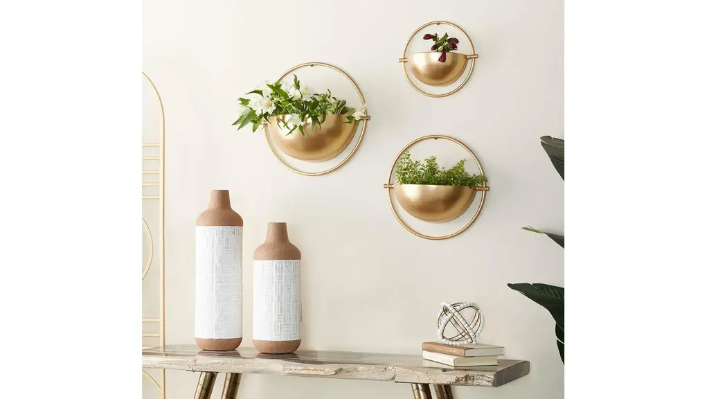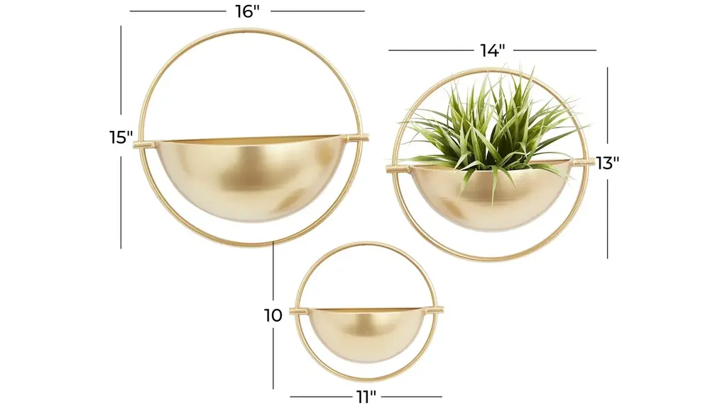 Bring nature into your space with this Ivy Collection Gold Metal Planter Set of 3 that provides a fresh and minimalist look to the interior or exterior of your home. Provides your living space a refreshing look with a comforting element and better air quality in your home. Items come with metal hardware at the back for easy and secure hanging. Suitable for indoor and outdoor use. Pots do not have drainage holes.