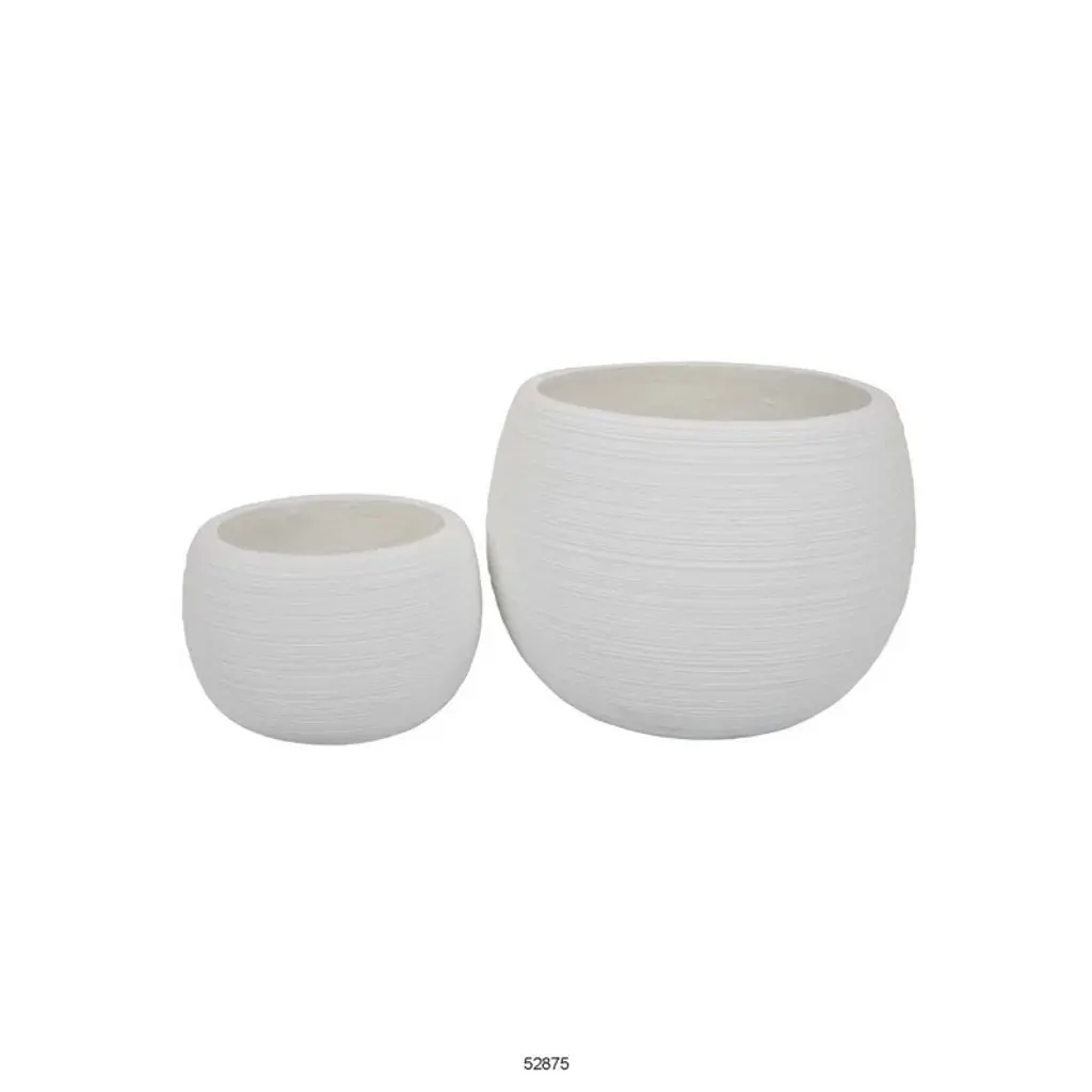 Relish in the artistry of our Jeanie set of two carved white planters, a delightful duo to elevate your botanical decor. Crafted from durable resin, these classic round planters feature an elegant carved design, exuding sophistication and charm. Check out our Jeanie collection for matching items.