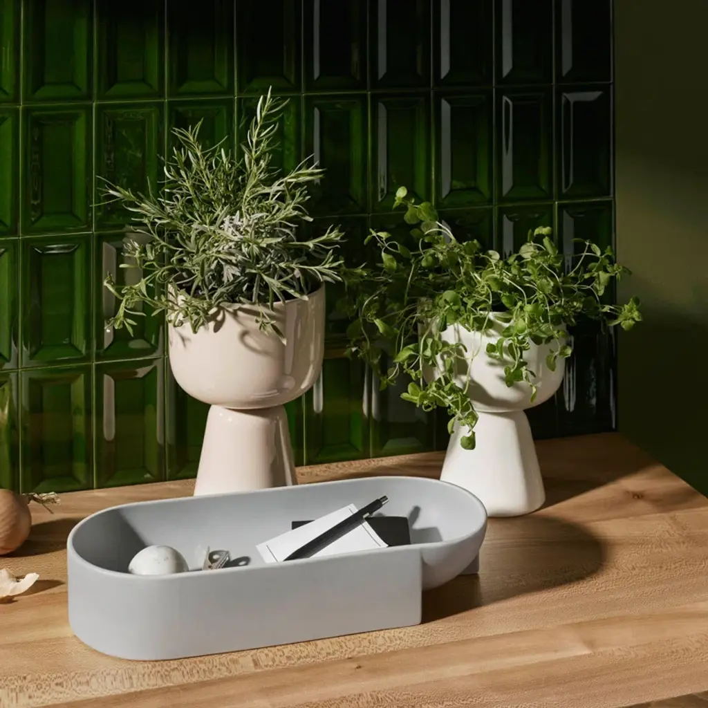 Designer Matti Klenell took inspiration for Juba from an awkwardly shaped table with swollen legs. It reminded Klenell of a classic form regularly found in the works by design masters like Oiva Toikka and Kaj Franck. Now a symbol of modern Nordic design, the smaller Juba plant pot showcases plants and flowers beautifully. The streamlined shape is an inspiration for green displays.