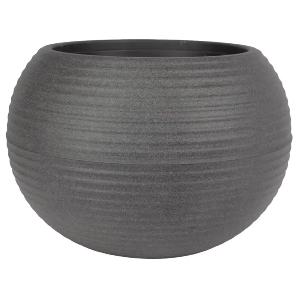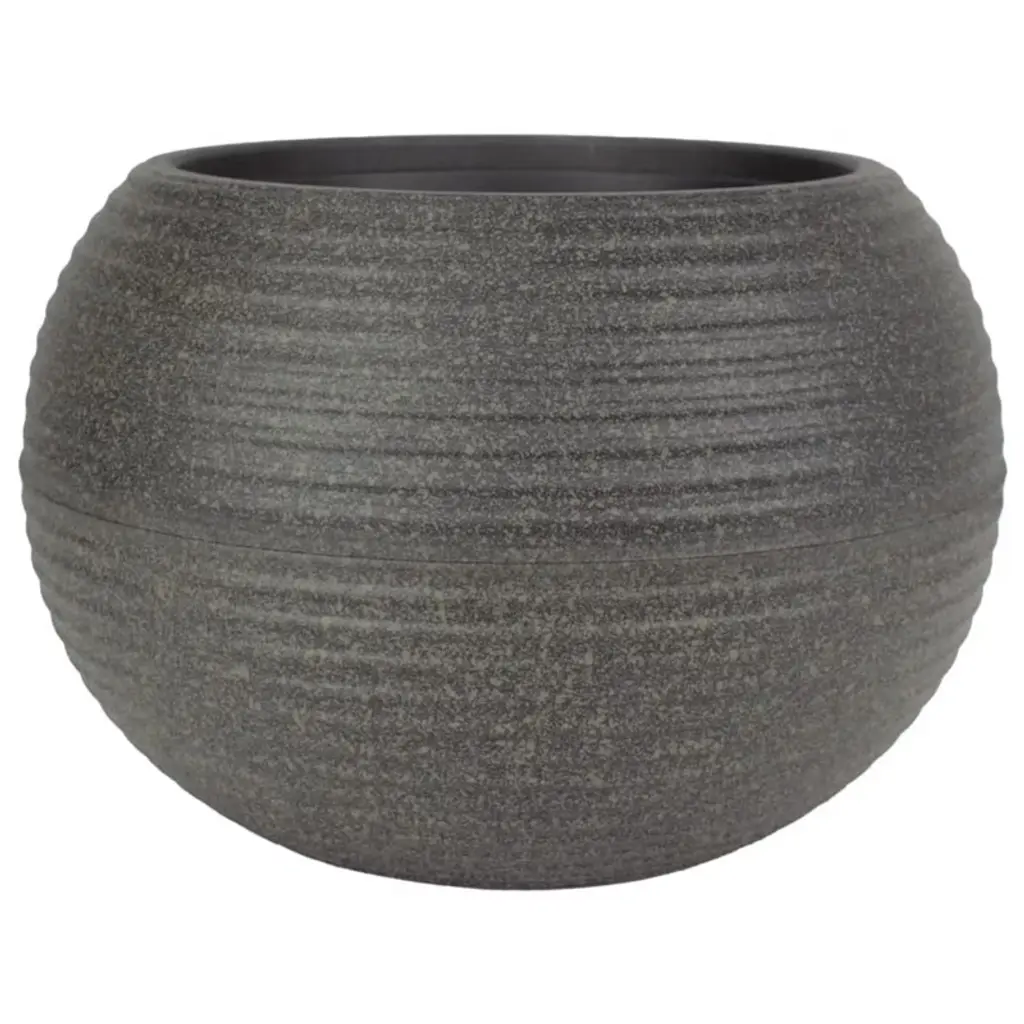 The June Extra-Small Raw Gray Planter looks like a vintage planter with its raw gray finish. Made of composite, its surface is striated to mimic fabric that has been wrapped around a vessel and slathered in a beautiful papier-mache treatment. One of the loveliest aspects of this design is that it is strikingly contemporary for a garden planter thanks to its warm gray finish and the top lip that rolls into its interior to leave the shape clean-lined. We offer this gray garden planter in a number of sizes and we have white planters in round and square shapes. Each of these reflects the ethos that Phillips Collection personifies: modern organic.