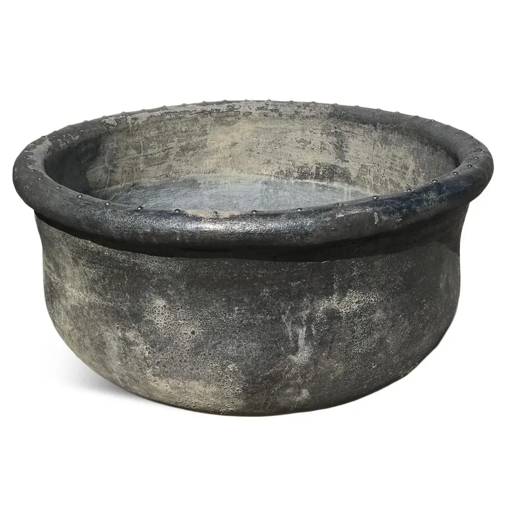 Beautiful handcrafted earthware clay pottery. Old world technique fired in underground kilns. Each piece with attractive unique faded black charcoal surface with variations in texture patterns. For use indoors or used in the garden as planters, water features and focal points of interest.