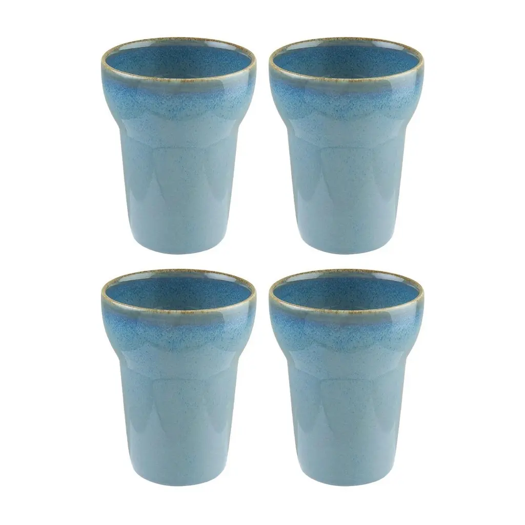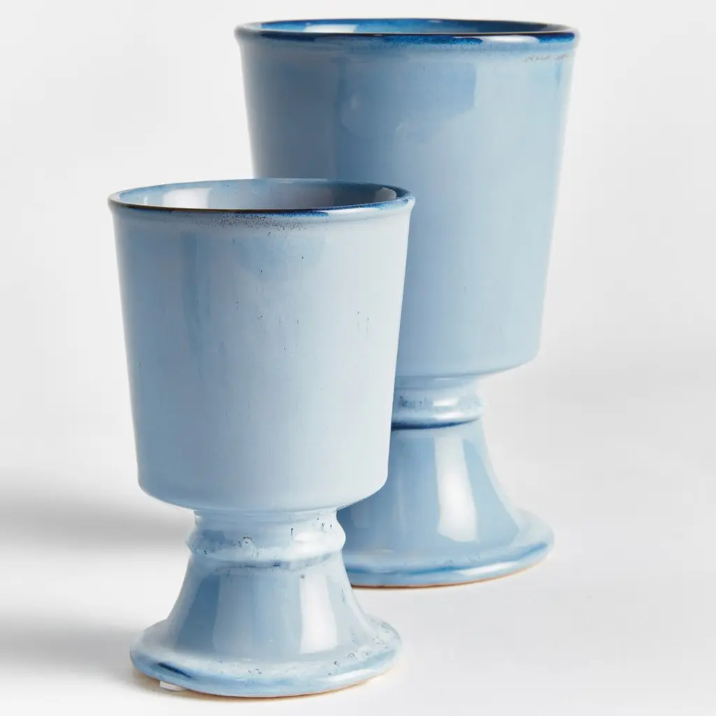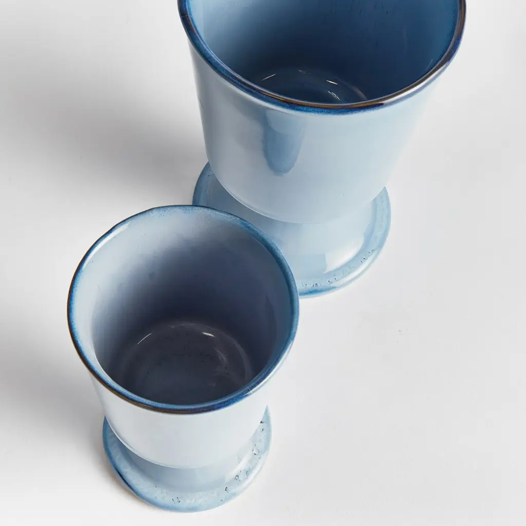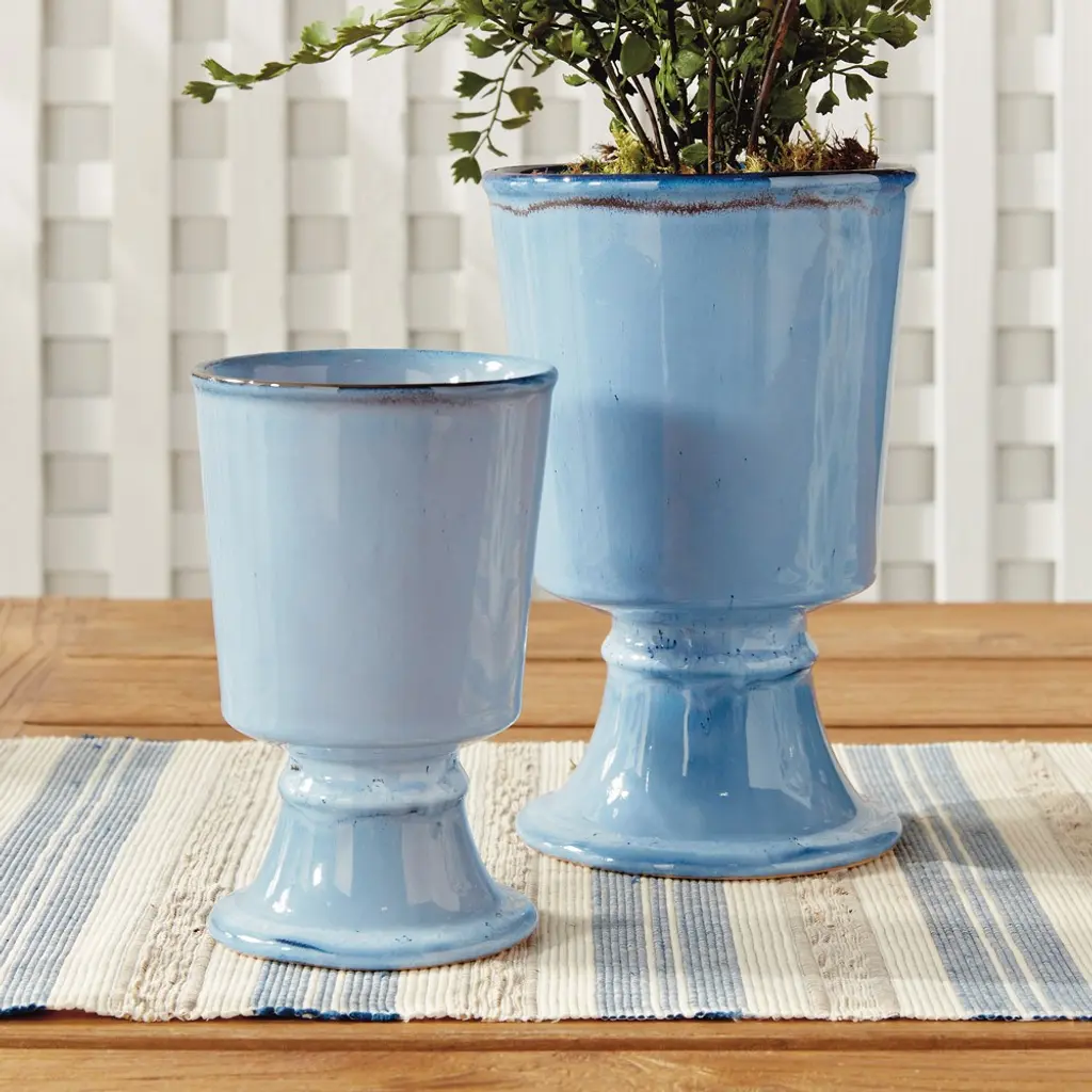 Kelsey Coastal Blue Glazed Stoneware Footed Outdoor Planter - Set Of 2