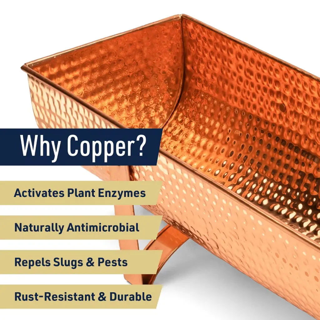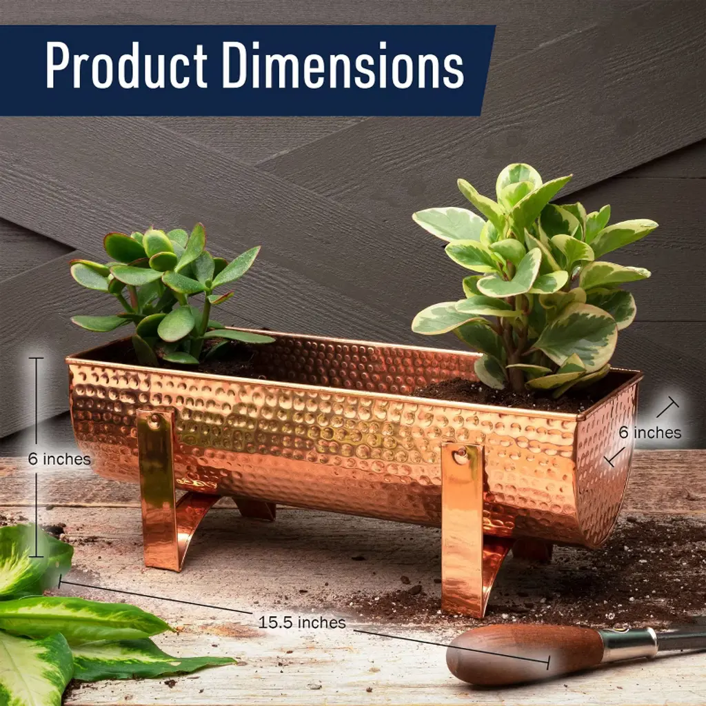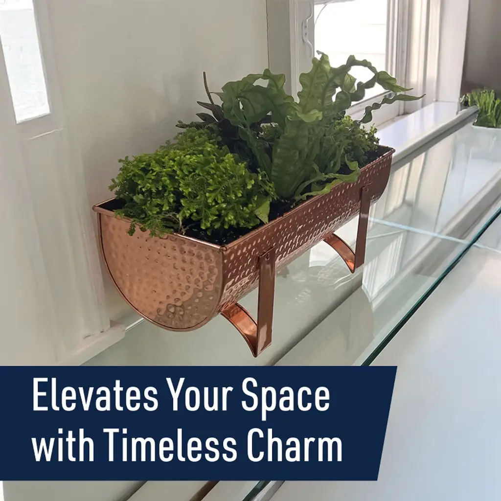 Our Window Box Planters by Kings County Tools are sure to be a beautiful addition to your front porch, deck, balcony, or home decor. The sturdy copper construction of our window planter boxes outdoor allows it to endure season after season of both indoor and outdoor use and will develop a rich, natural patina over time, adding charm to your windows, railings, or patios. Use this trough planter to add an elegant touch to any space, as an indoor herb garden, or use it as a decorative centerpiece for weddings or dinner parties.
