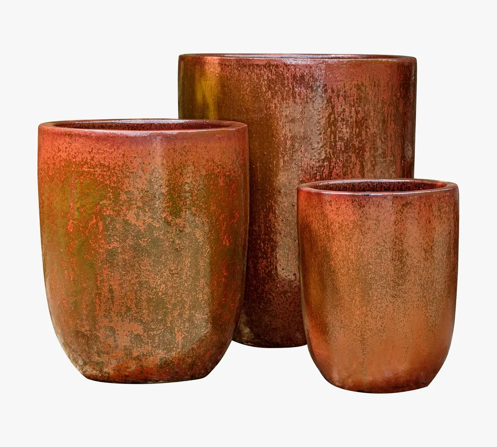 In a contemporary bowl shape handcrafted from terracotta, these planters brighten the deck or patio with their vivid, contemporary glaze colors. The three sizes are made for grouping together so you can create a staggered display of flowers, herbs, and even a small ornamental tree.