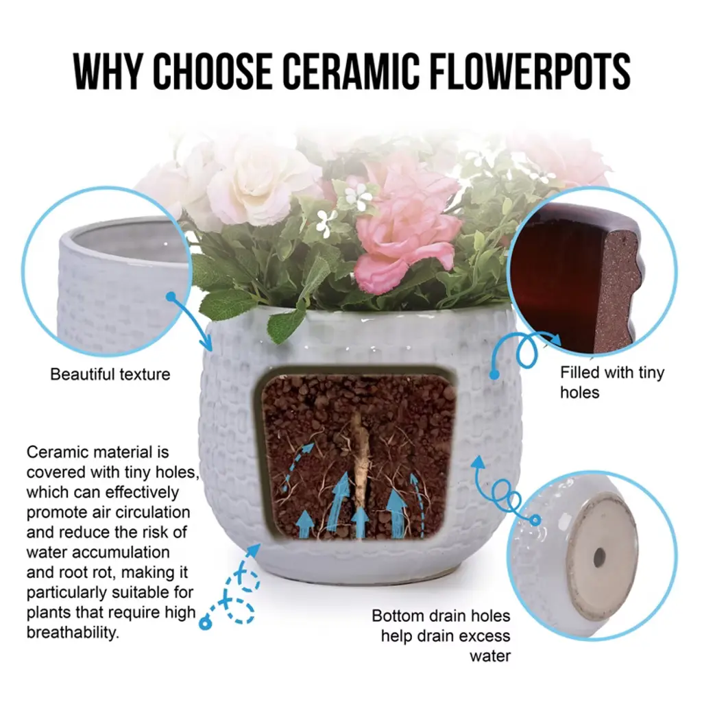 This stylish and beautiful planter will give your plants a unique touch. It blends seamlessly with any home or garden decor, creating a sleek and elegant look. Grow your plants in this indoor planter. This ceramic planter is perfect for growing a variety of plants, such as orchids, tiger plants, mint, herbs, cacti, and aloe vera, to delight your senses.