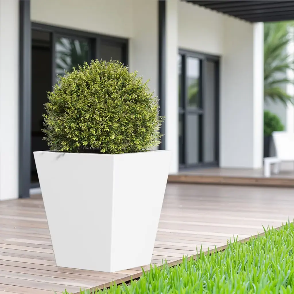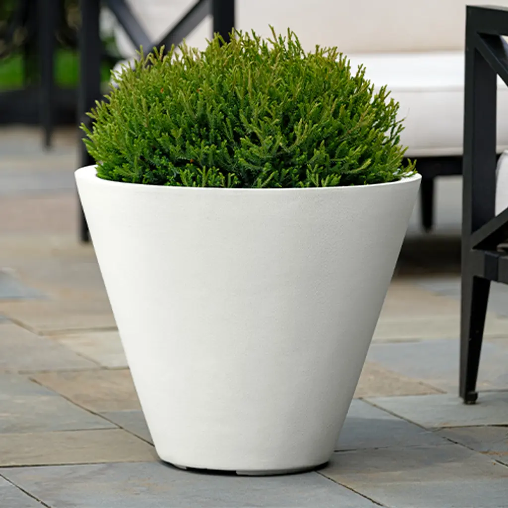 You can see at a glance that this conical planter is chic. Less apparent, but just as important, is its durability. The planter is made of lightweight fiberglass—it weighs just 11 pounds—suitable for use indoors and out. It can withstand weather extremes, won't fade from sunlight, and doesn't require a plastic liner.