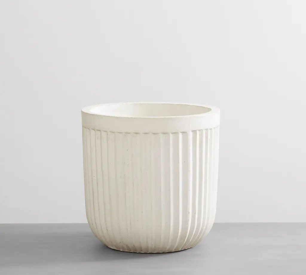 Elevate the beauty of your indoor decor or emphasize the style of your outdoor patio with this modern planter. Made from lightweight recycled polyresin, it is coated with UV inhibitors to minimize fading and ensure it looks great for years to come, and the design is created to resemble natural stone planters, but without the heavy weight and it is easy to move. The planter features easy knock-out drainage holes.