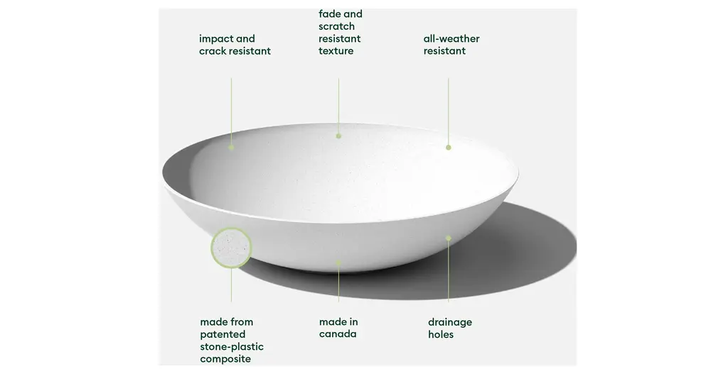 Contemporary yet versatile, the Lane Bowl Planter is the perfect addition to any backyard garden. Featuring an elegant finish and a modern, contemporary, sleek bowl design, the Lane Bowl planter is ideal as a succulent garden or lined along a walkway. Molded from a patented plastic composite, all Veradek planters are extremely durable and designed to withstand the elements – winter or summer. Lane Bowl planters are flexible, impact resistant and are sturdy yet lightweightWith a Veradek product you can rest assured that you are receiving the perfect balance of design, durability and convenience.