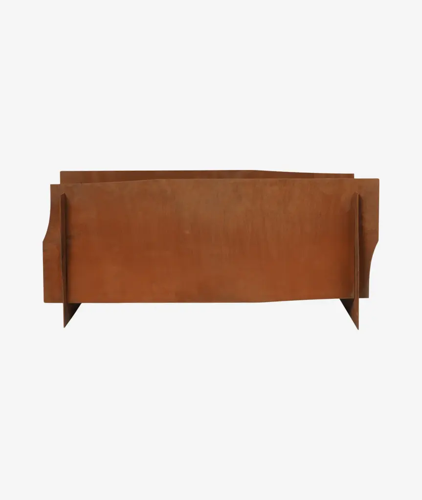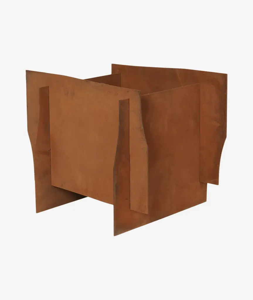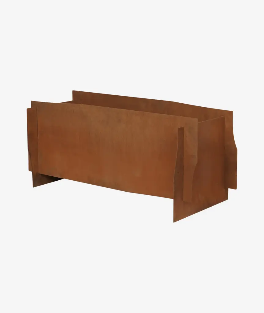 The Lapel Planter is crafted from Corten steel, known for its durability and weather resistance. Composed of interlocking flat sheets, it forms a sharp, lightweight structure with a raised central body for visual balance. Inspired by the asymmetry of fragmented cardboard, the design delivers a dynamic aesthetic that seamlessly integrates into any environment, adding a tactile, authentic touch. This piece is delivered flat-packed, ensuring effortless transport and seamless, tool-free assembly.