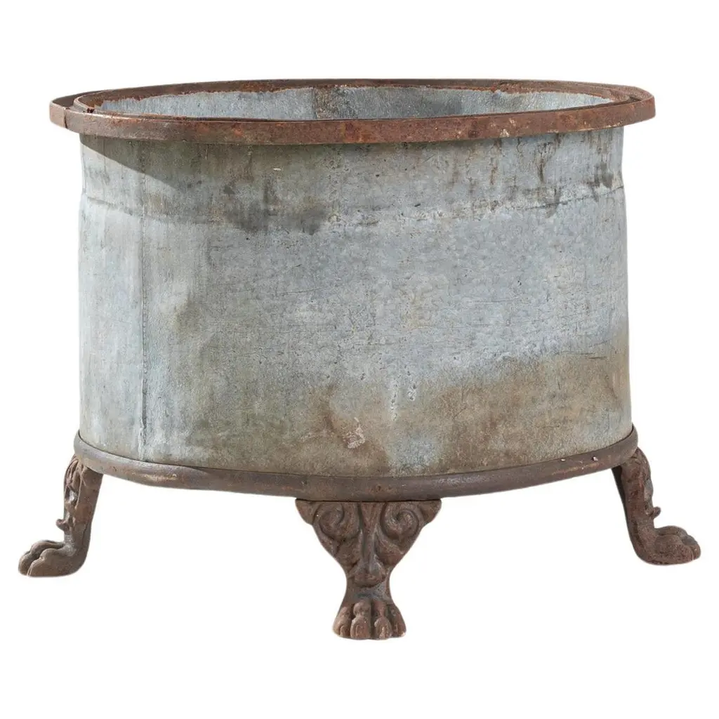 Large Rustic Aged Metal Planter Enhance spaces with these vintage-inspired aged metal planters. Perfect for porches, gardens, or indoor decor. Features a rusty patina with dents and scratches. Inspired by old dairy creamery tanks, the aged look adds rustic elegance. Ideal for plants, flowers, shrubs, or even Christmas trees. This is a floor samples Manufacturer: Park Hill Indoor/Outdoor Use: Versatile for both spaces Material: Iron with an aged metal finish Sizes Available: Medium: 19.75”H x 19.25”D (17 lbs) Large: 26.5”H x 26.25”D (20 lbs) No assembly required.