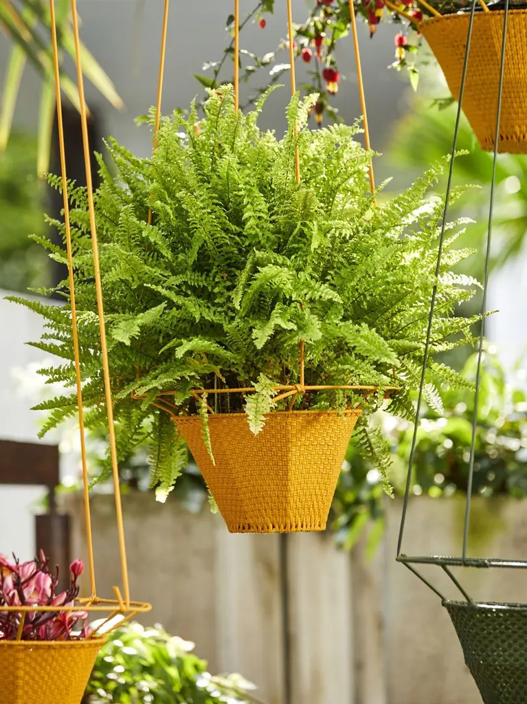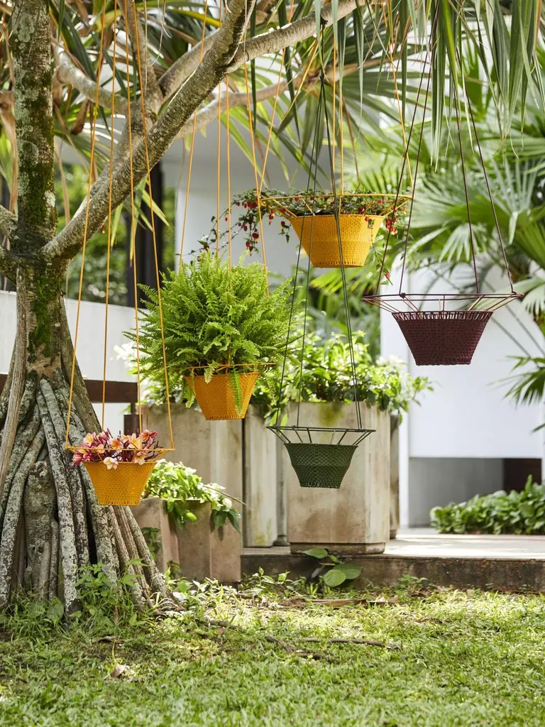 Large dichas hanging planter by Cristina Celestino. Materials: PVC strings made from recycled plasticDimensions: D 60 x H 21 cm Available in colors: black red, honey yellow, olive green. Available in other size.The Dichas Hanging Planters give every room plant an extraordinary home. Their vibrant colors and large sizes give them an air of extravagance, while their beautifully woven details add a playful touch. The Italian designer was not only influenced by the traditional flower baskets popular in Colombia but also studied the hanging gardens César Manrique built on Lanzarote.Cristina Celestino is one of the most prolific contemporary Italian designers. Her products and interiors share a softness, often defined by curved lines, a love for pastel hues, and subtle links to Italy's rich design heritage. She graduated from the school of architecture at IUAV University of Venice in 2005 and started working as an interior and furniture designer.