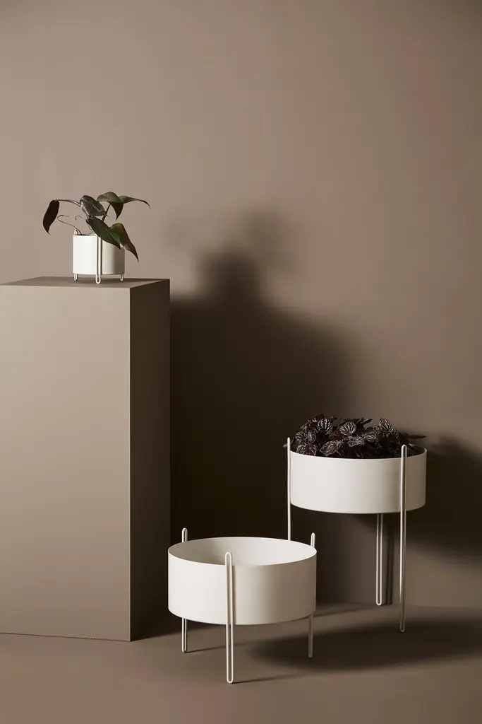 Large grey Pidestall planter by Emilie Stahl CarlsenMaterials: Metal.Dimensions: D 40 x H 55 cmAvailable in grey, red, taupe or black and in 3 sizes: D 15 x H 15, D 40 x H 35, D 40 x H 55 cm.Emilie Stahl Carlsen is a Nor wegian designer who recently graduated from Oslo and Akershus University College of Applied Sciences in Product Design. The young designer has gained distinction at exhibitions and been nominated at Bo Bedres Designpris 2017 as ‘Newcomer of the year’ and her design PIDESTALL as ‘accessories of the year’.With great at tention to functionality and minimalism in her design process, she creates designs with meaning, purpose and function. Her designs are characterised by simplicity and a drive to develop perfection.WOUDThe founders, Mia and Torben Koed, decided to put their 30 years of experience into a new project. It was time for a change and a new challenge. The challenge was to build an ambitious design brand from the ground up with high-quality materials and great attention to the little details. With a drive to create new originals, the WOUD collection is founded upon the idea to look ahead instead of looking back and share the love for honest design. Therefore, we are eager to discover and develop new ideas whether it being in form, function or choice of material.