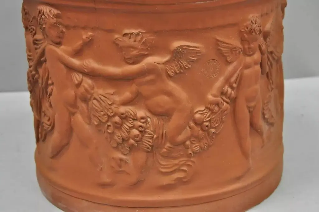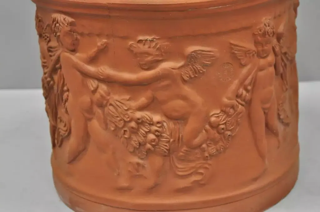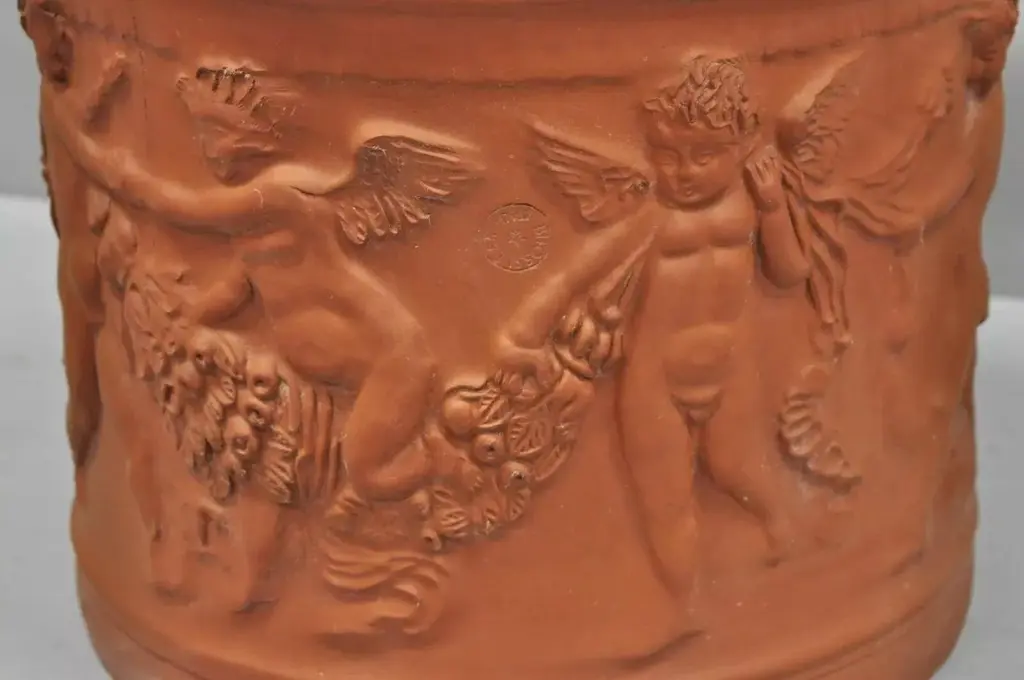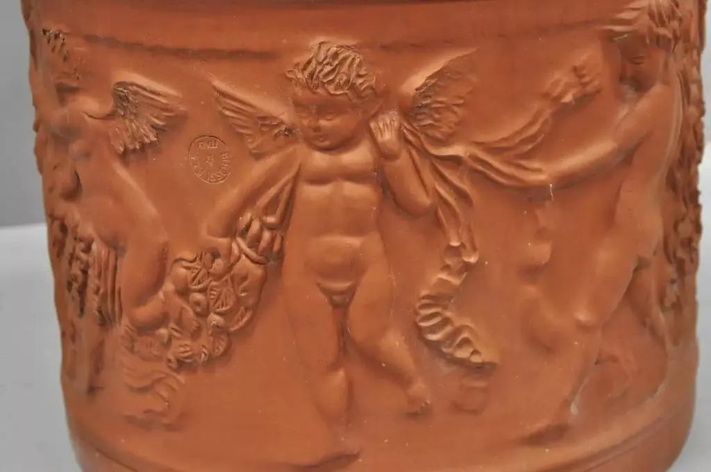 Large Italian Bitossi Red Terracotta Cherub Putti Garden Planter Flower Pot