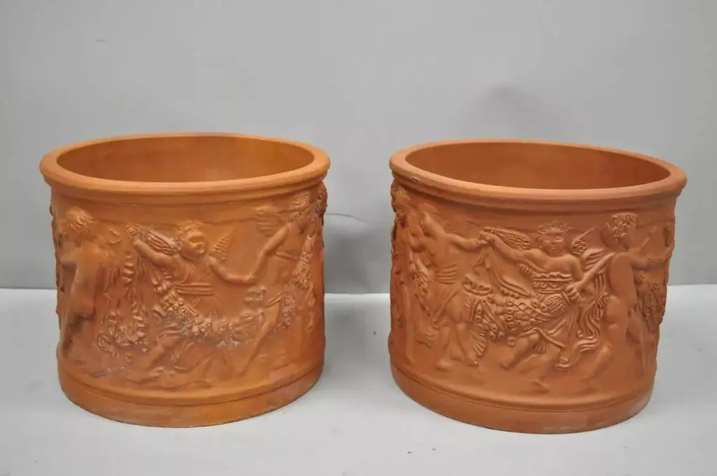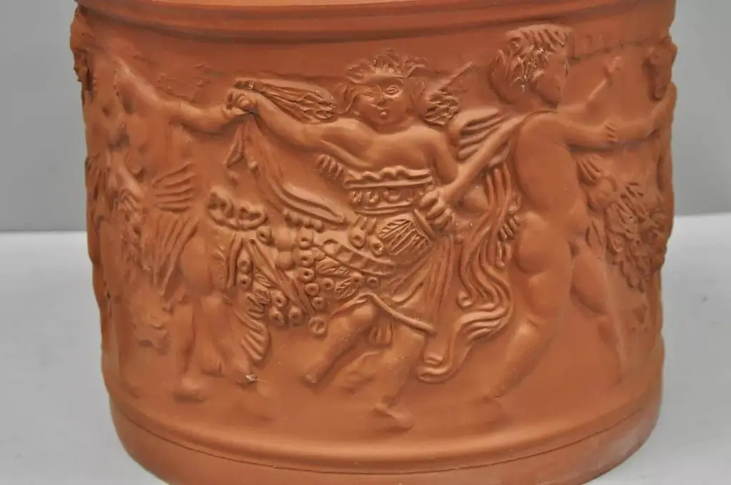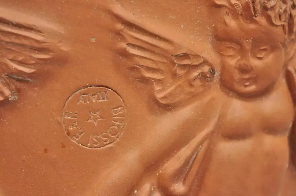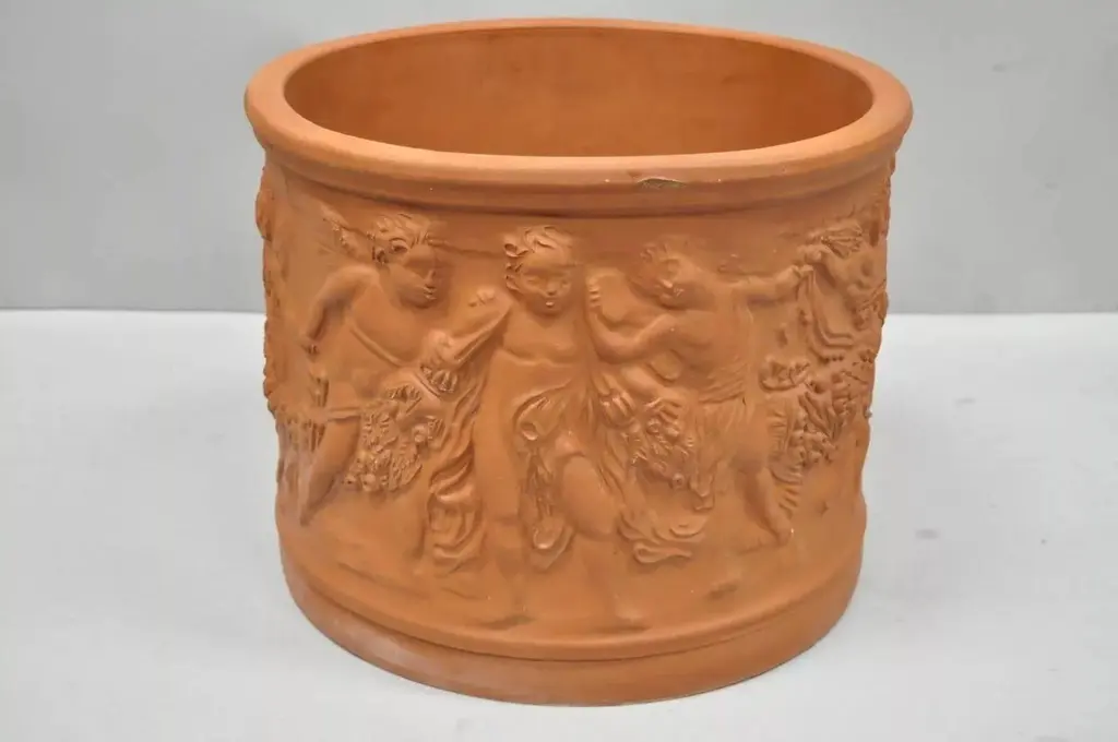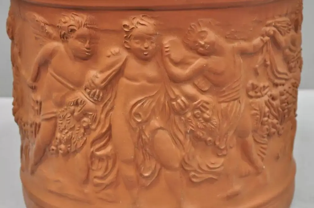 Large Italian Bitossi Red Terracotta Cherub Putti Garden Planter Flower Pot