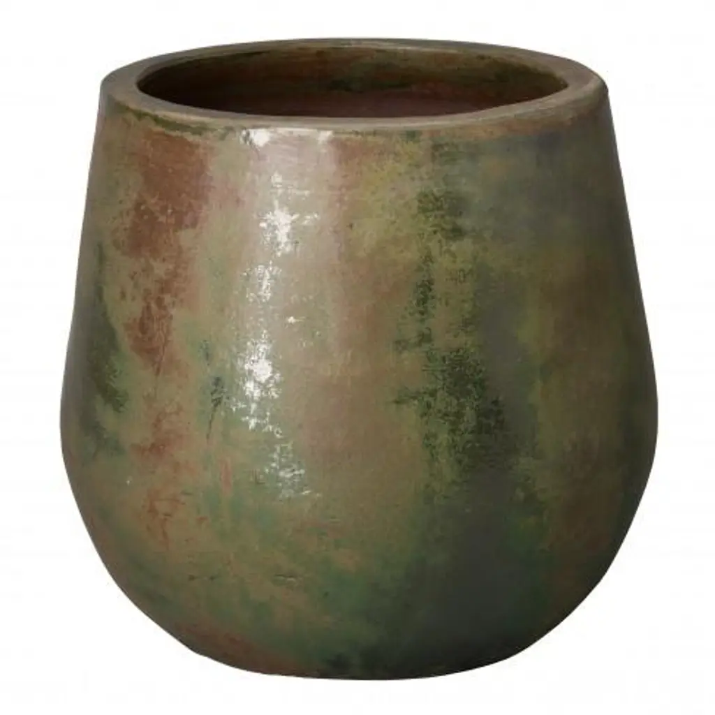 This large planter with its green glaze fits perfectly amongst other earth tones and will make an excellent addition in your garden. Color: Green Wash Glaze Size: 1'9"D x 1'9"H Finish: Glossy Glaze *Images shown are for Illustration purpose only, actual product's color/finish/option may vary.