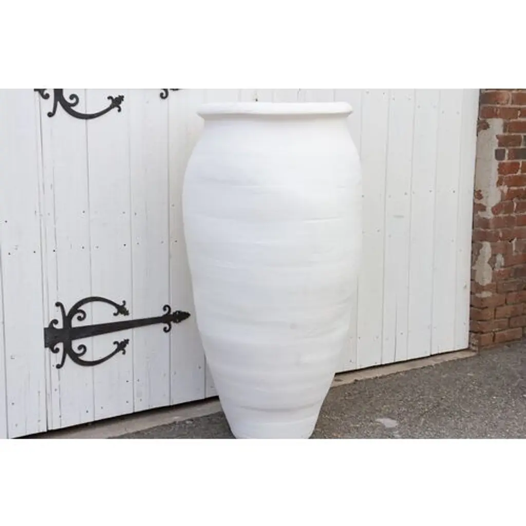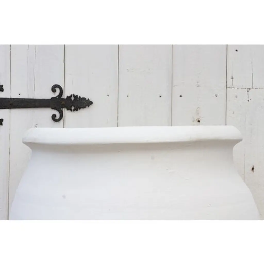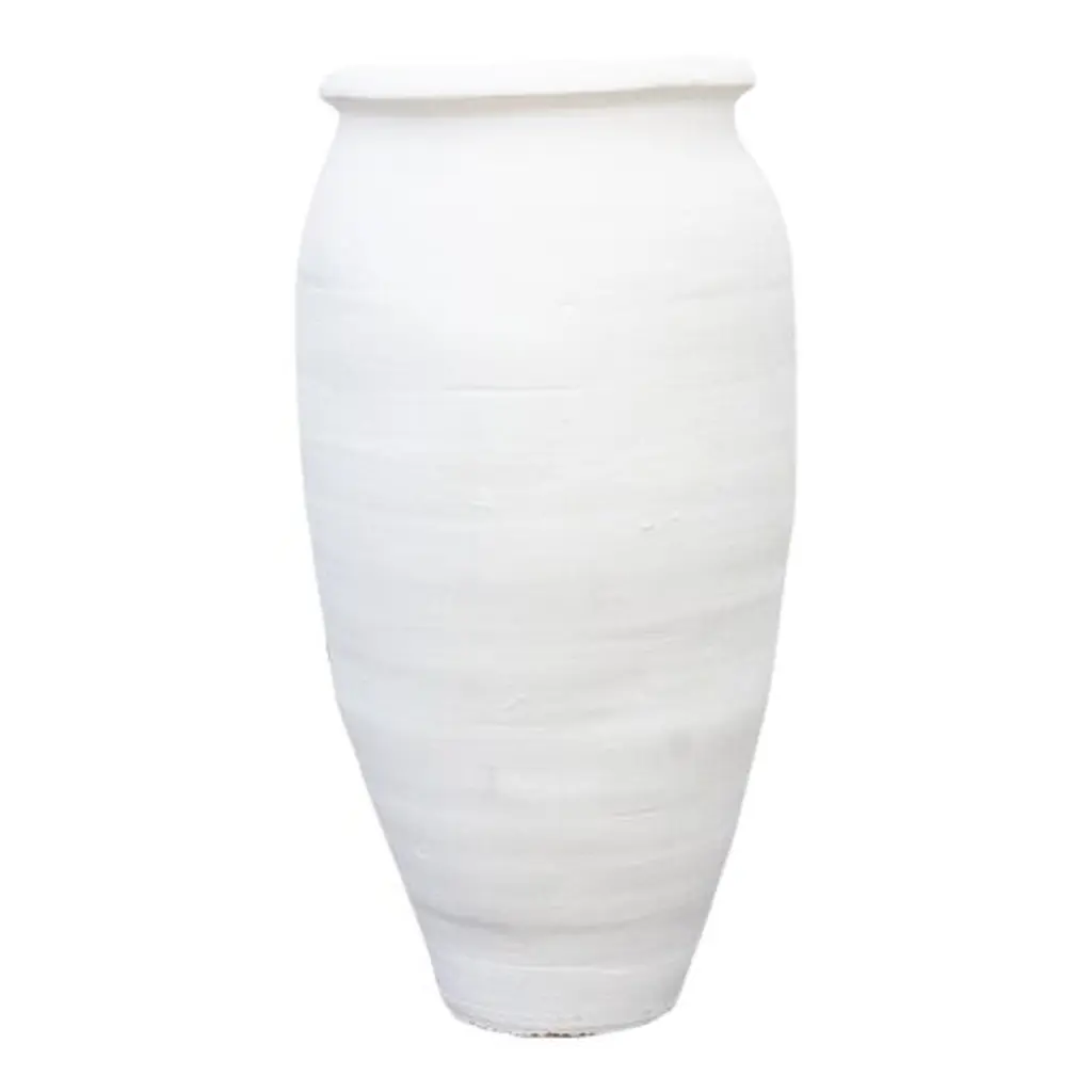 A grand and robust terracotta planter with wide top opening, amphora shape and un-glazed whitewash surface. Ready to be filled with gorgeous plants, this piece is perfect to add touch of nature to any home. This planter has a drainage hole at the bottom of its base.