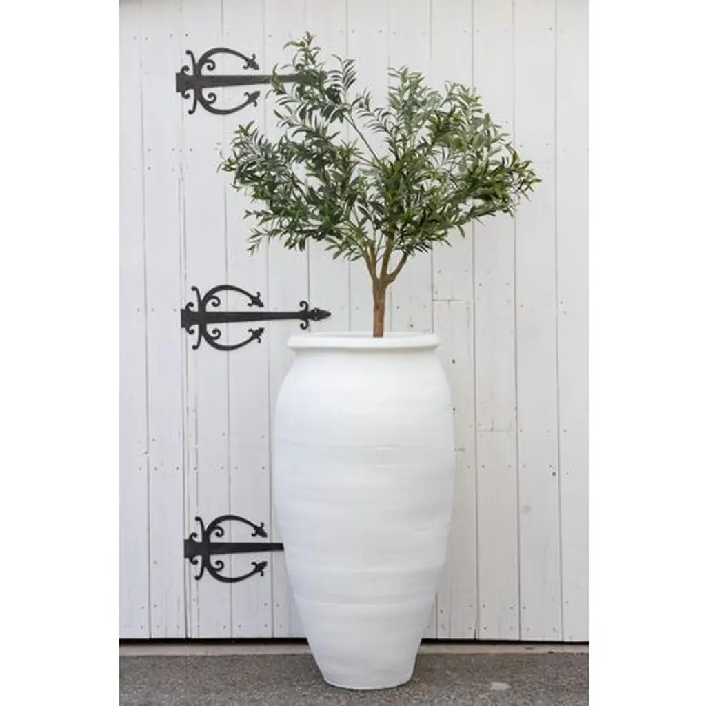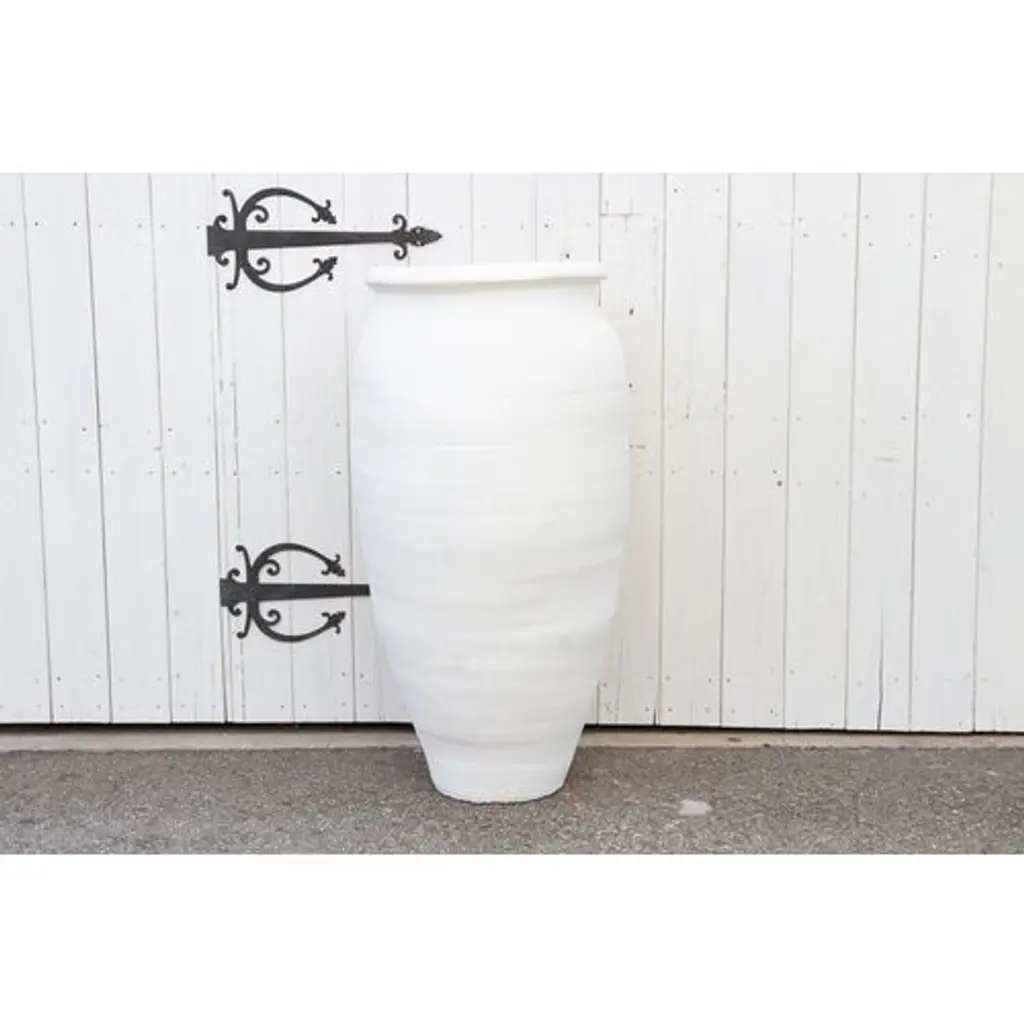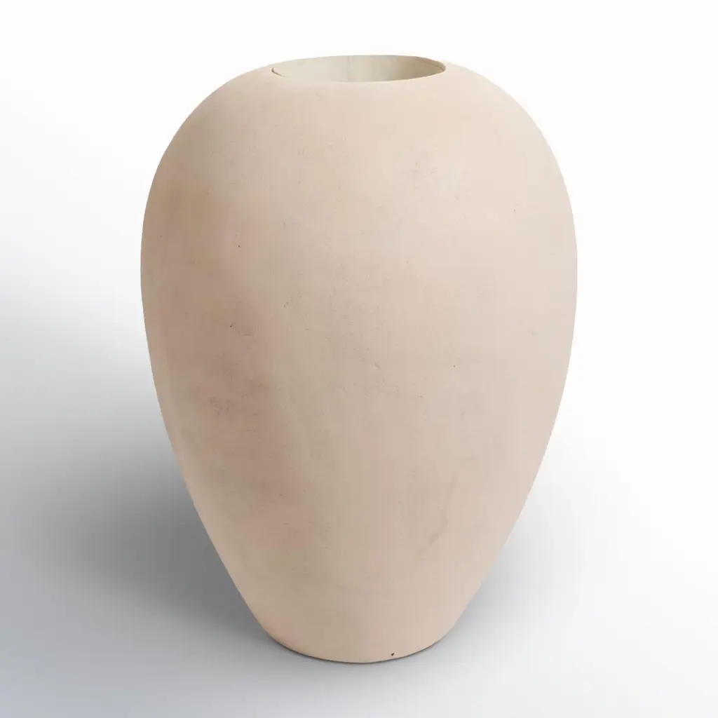 A grand and robust terracotta planter with wide top opening, amphora shape and un-glazed whitewash surface. Ready to be filled with gorgeous plants, this piece is perfect to add touch of nature to any home. This planter has a drainage hole at the bottom of its base.