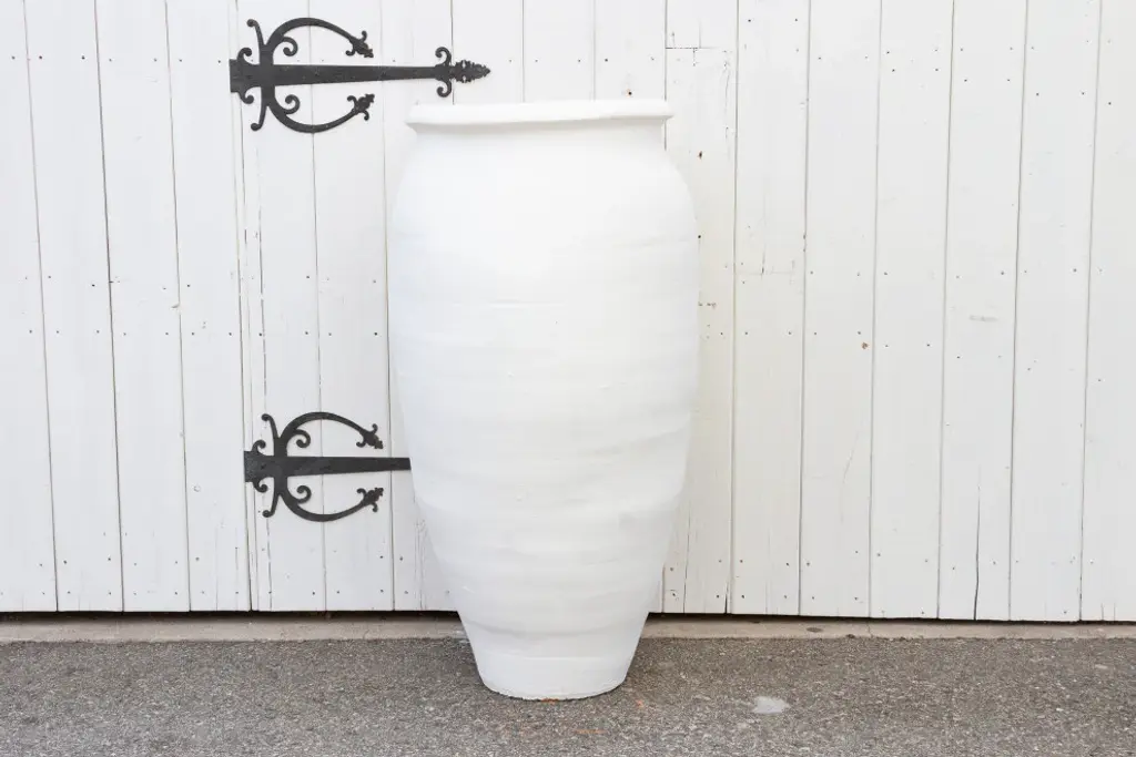 A grand and robust terracotta planter with wide top opening, amphora shape and un-glazed whitewash surface. Ready to be filled with gorgeous plants, this piece is perfect to add touch of nature to any home. This planter has a drainage hole at the bottom of its base.