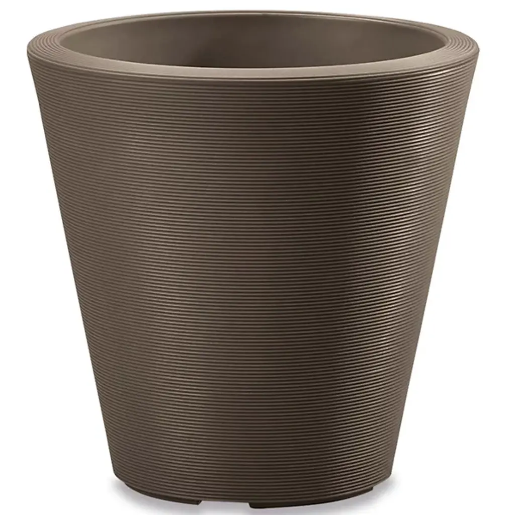 Give your plants an elegant home! This lovely planter is made of high quality, UV resistant, and shatterproof polyethylene, making it a lightweight and durable container for flowers, herbs, succulents, and more. Its dark bronze finish and simple lines make it a fitting addition to any contemporary home in need of a minimalistic yet stylish display for plant friends. Its dimensions are 34"x34".