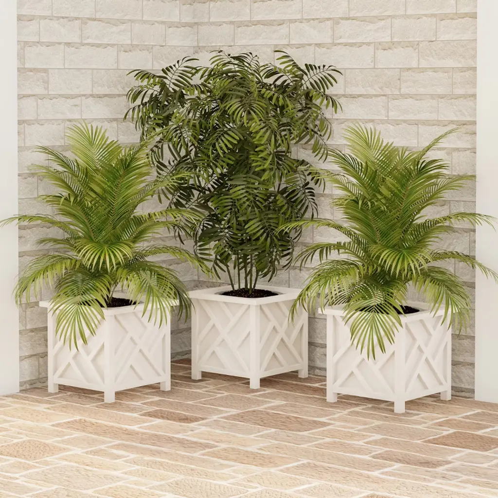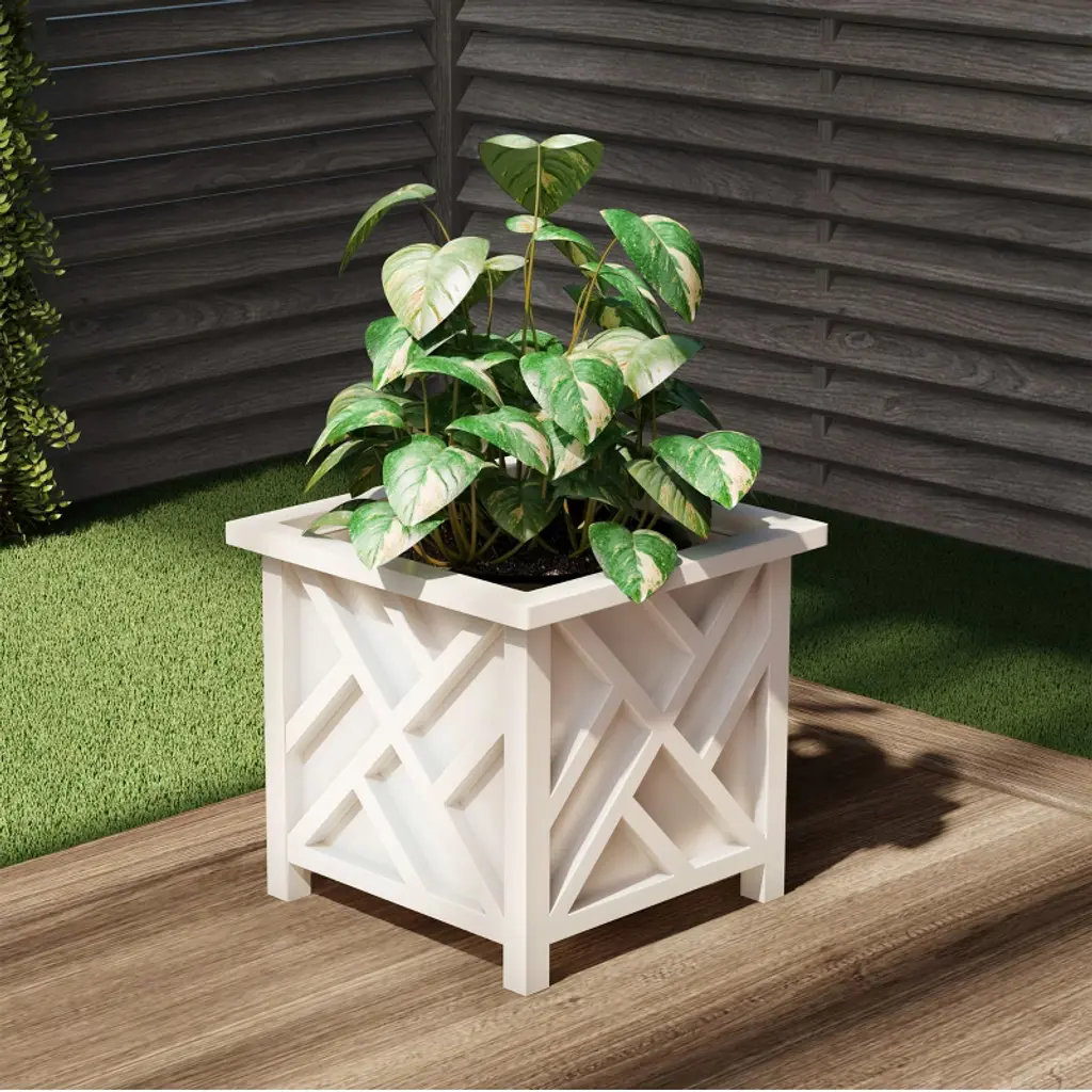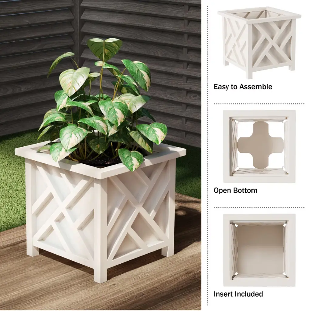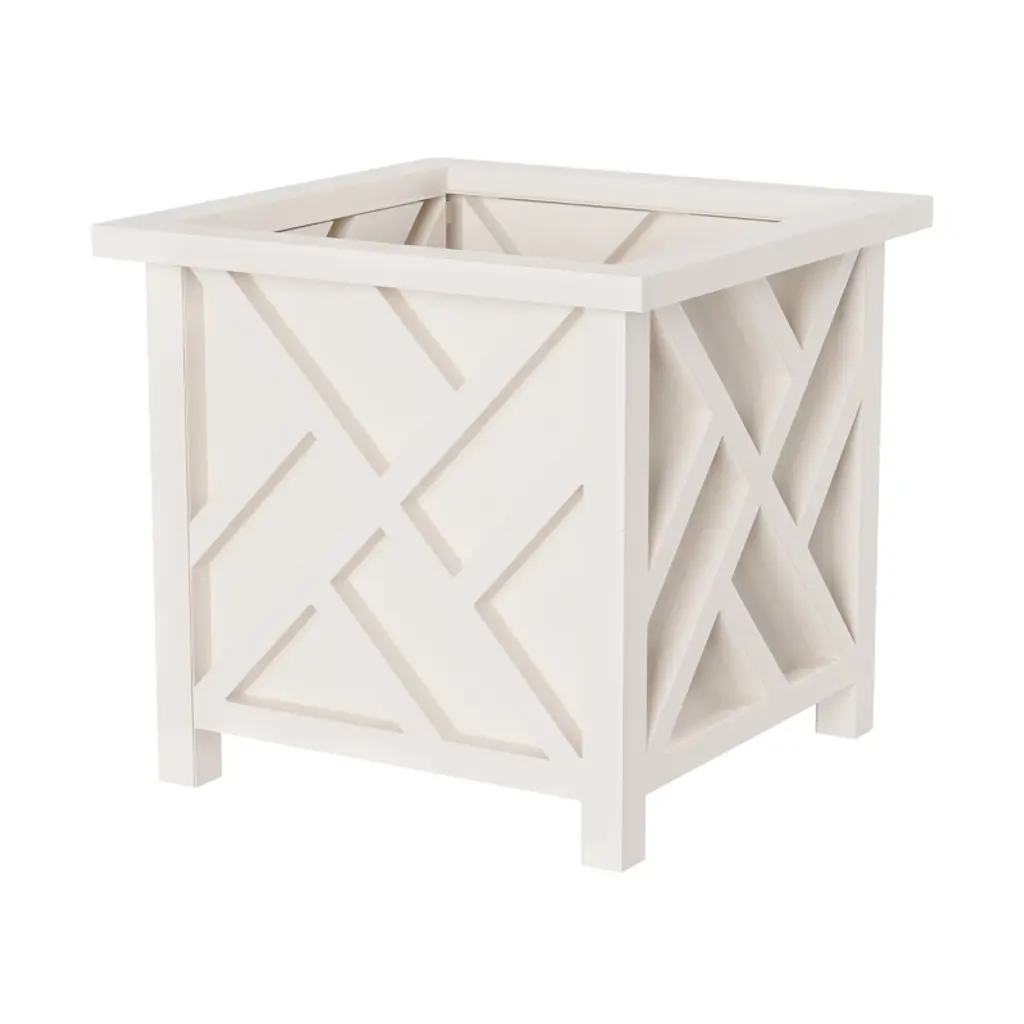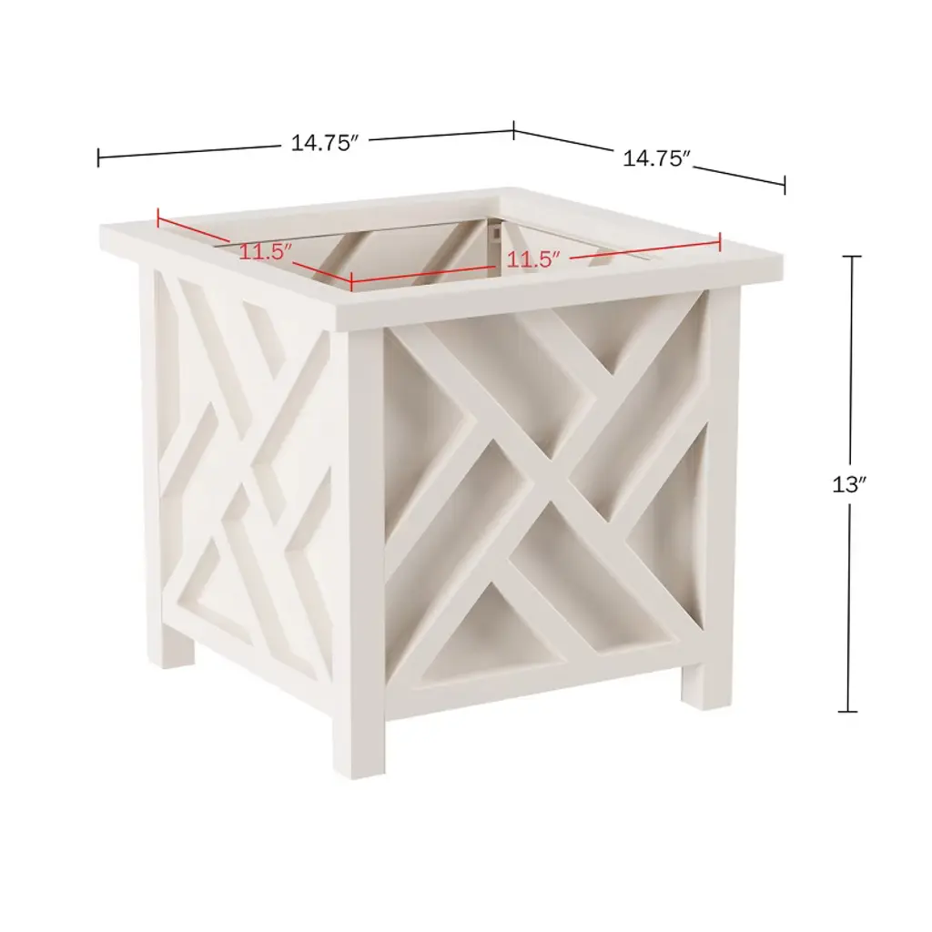 Lattice Design Planter Box – 14.75-inch-square Decorative Outdoor Flower Or Plant Pot – Front Porch, Patio, And Garden Decor By Nature Spring (White)