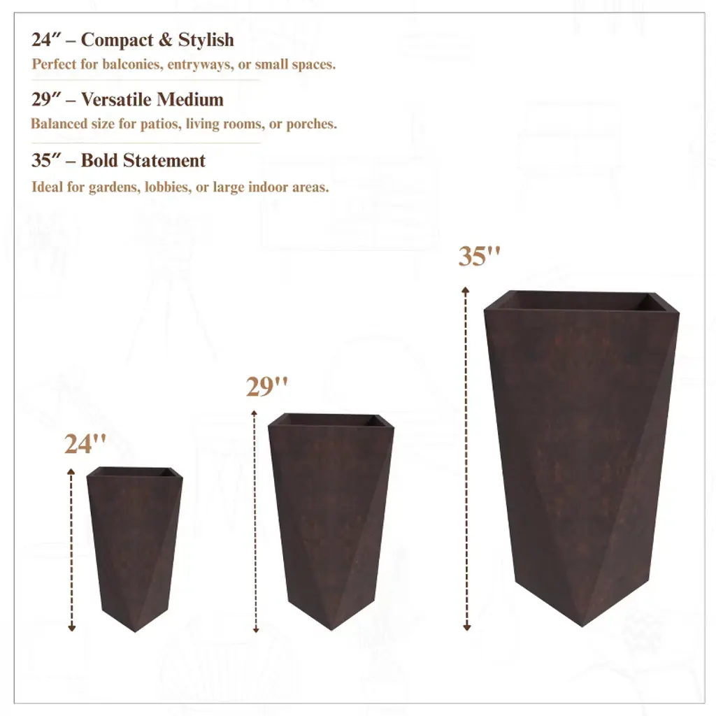 Elevate your indoor and outdoor gardening with the 3-Piece Aloe Square Planter Set. Featuring a sleek tapered square design, these planters add timeless sophistication to any space. Handcrafted from durable fiberstone and clay, each piece offers artisanal charm and exceptional weather resistance, making them perfect for both indoor and outdoor use. Stylish and versatile, the Aloe Planter Set seamlessly blends form and function, enhancing your home or garden with modern elegance.