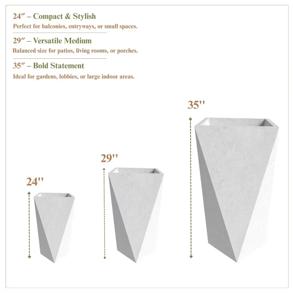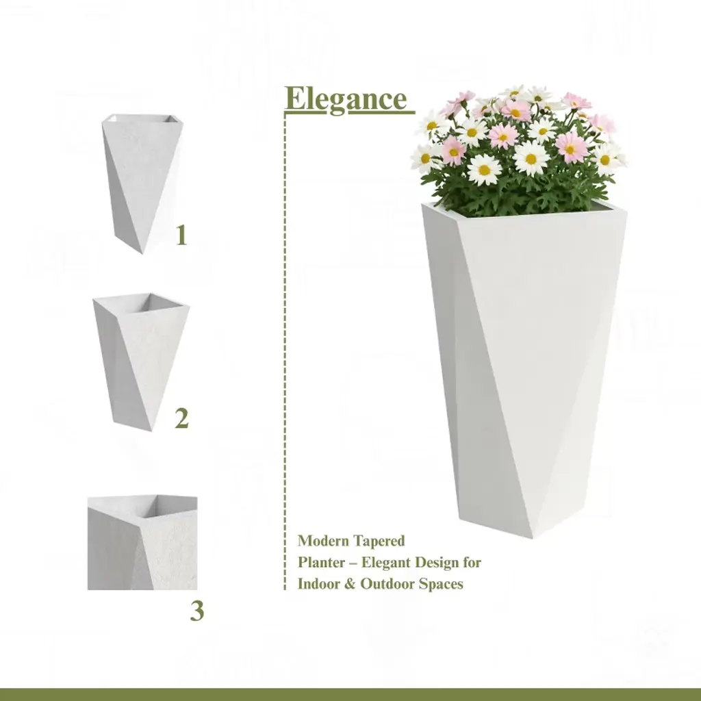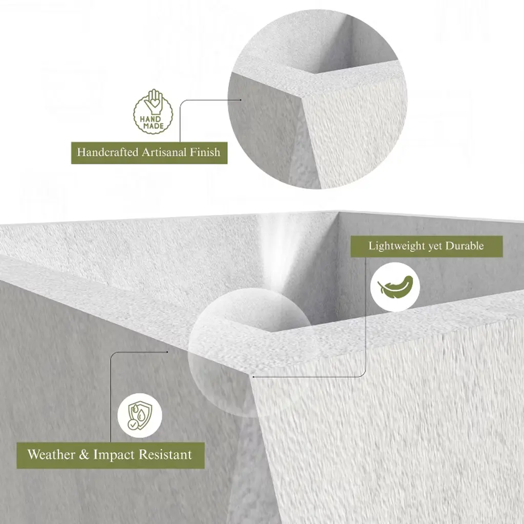 Elevate your indoor and outdoor gardening with the 3-Piece Aloe Square Planter Set. Featuring a sleek tapered square design, these planters add timeless sophistication to any space. Handcrafted from durable fiberstone and clay, each piece offers artisanal charm and exceptional weather resistance, making them perfect for both indoor and outdoor use. Stylish and versatile, the Aloe Planter Set seamlessly blends form and function, enhancing your home or garden with modern elegance.