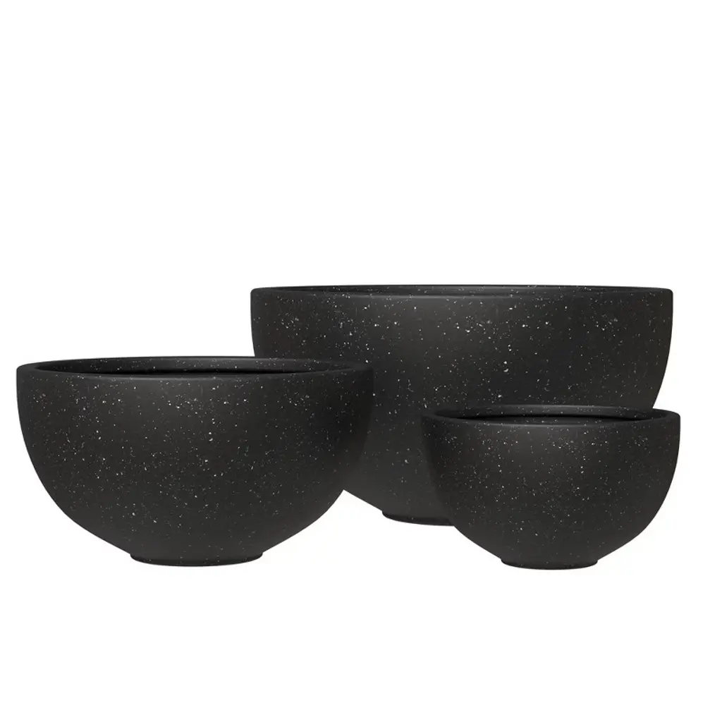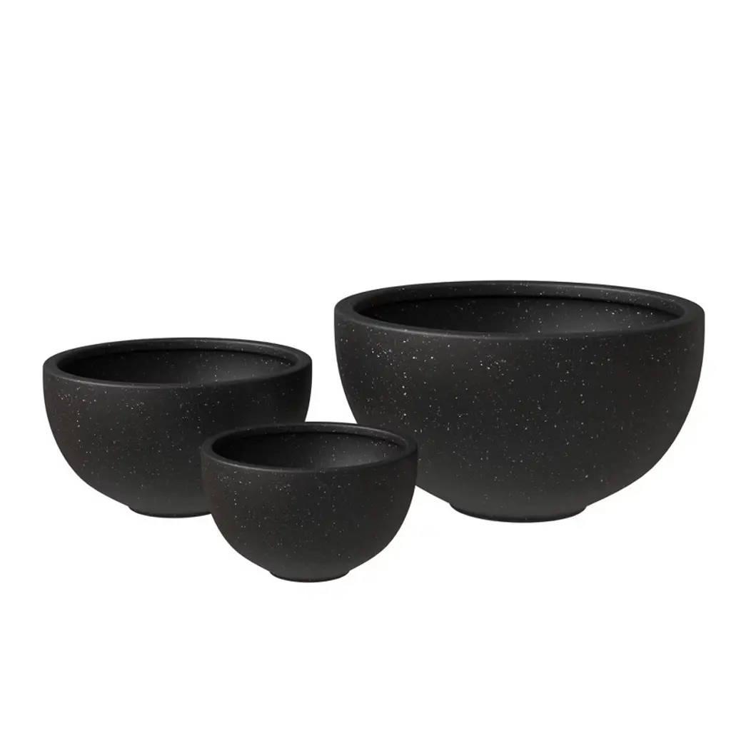 Leisuremod Iris 3-piece Fiberstone And Clay Planter Set Round Plant Pots With Drainage Holes For Indoor And Outdoor (Black)