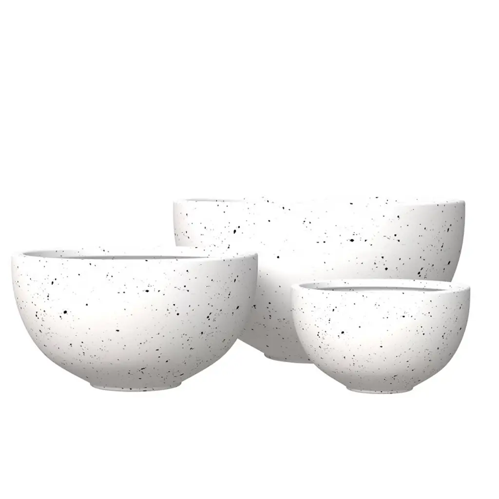 Leisuremod Iris 3-piece Fiberstone And Clay Planter Set Round Plant Pots With Drainage Holes For Indoor And Outdoor (White)