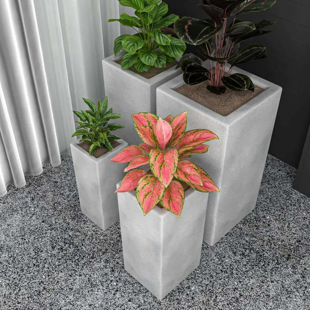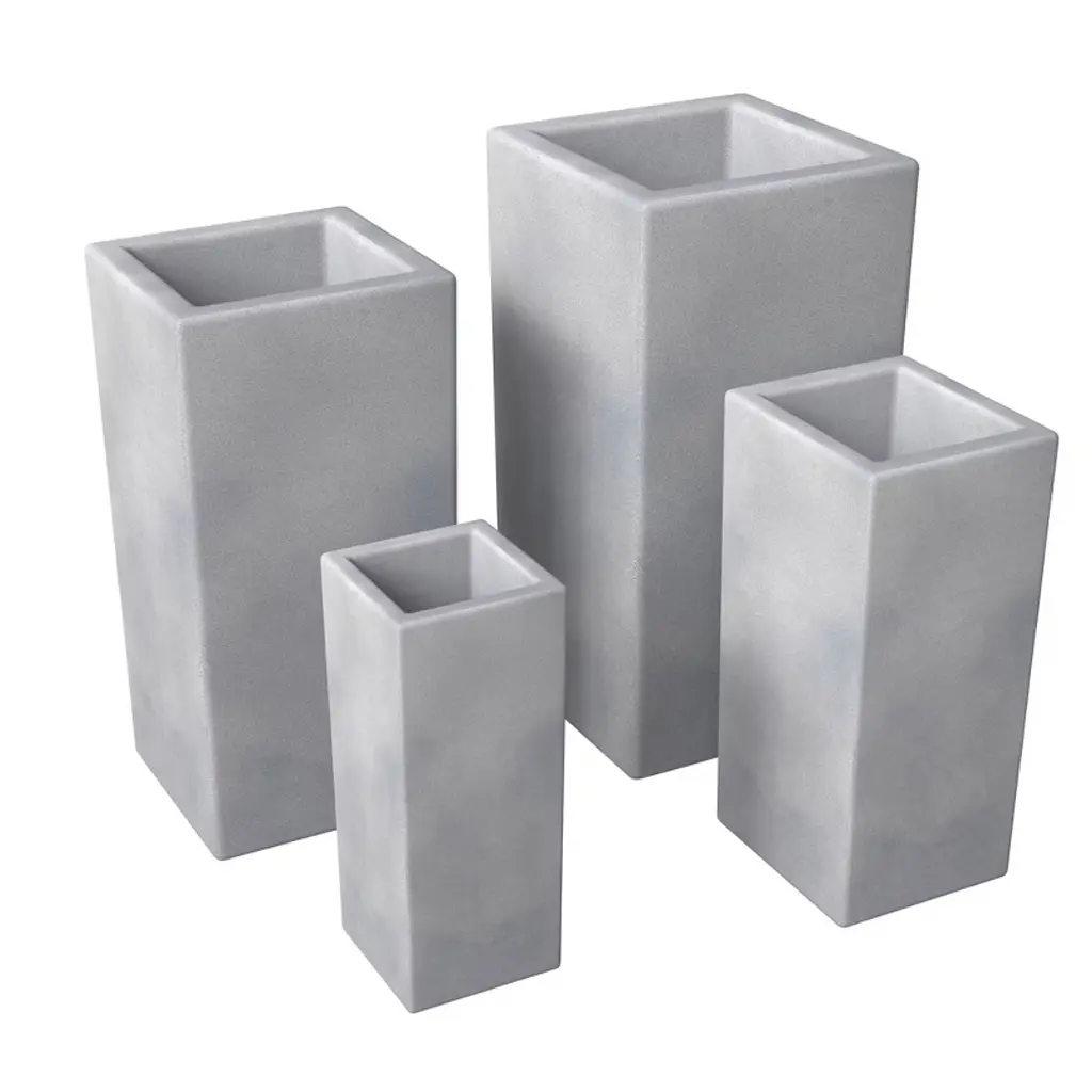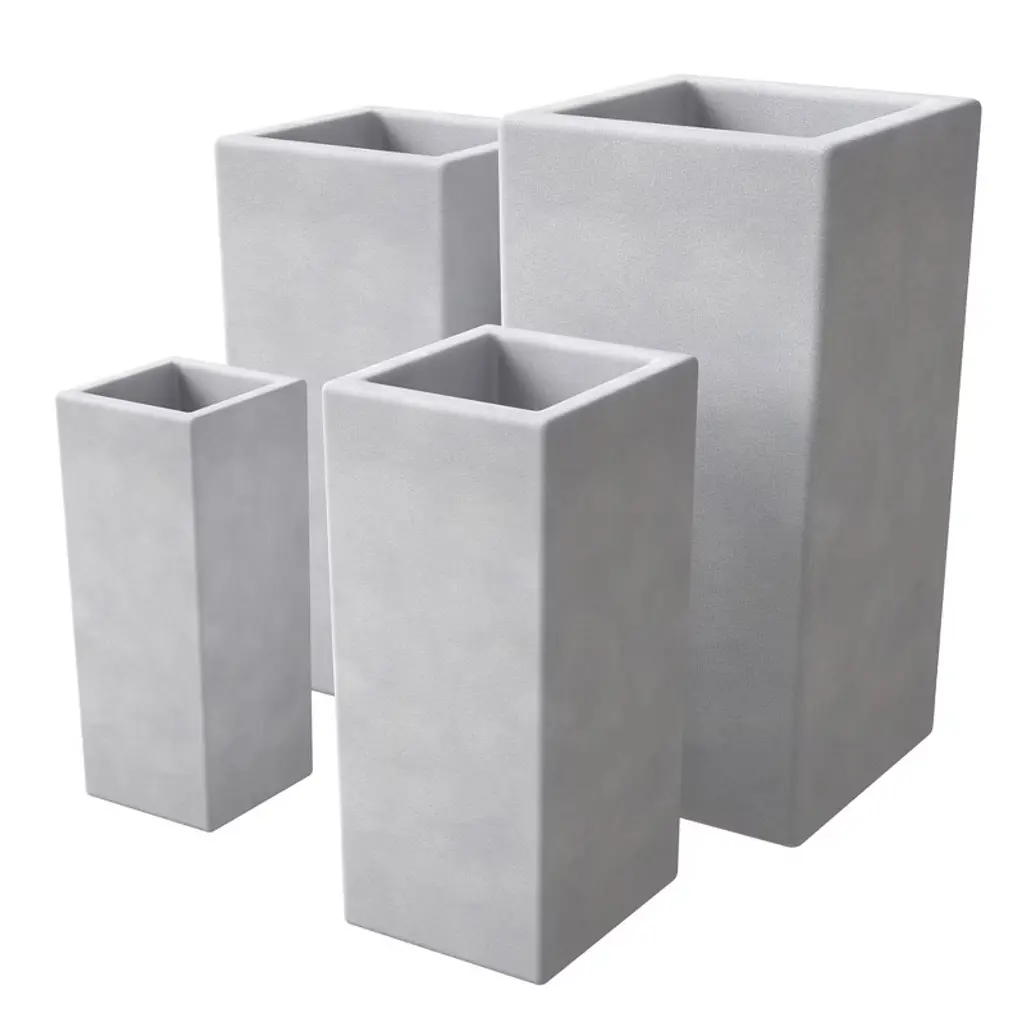 Leisuremod Terra 4-piece Fiberstone And Mgo Clay Planter Set Tall Square Planter Pot For Indoor And Outdoor (Aged Concrete)