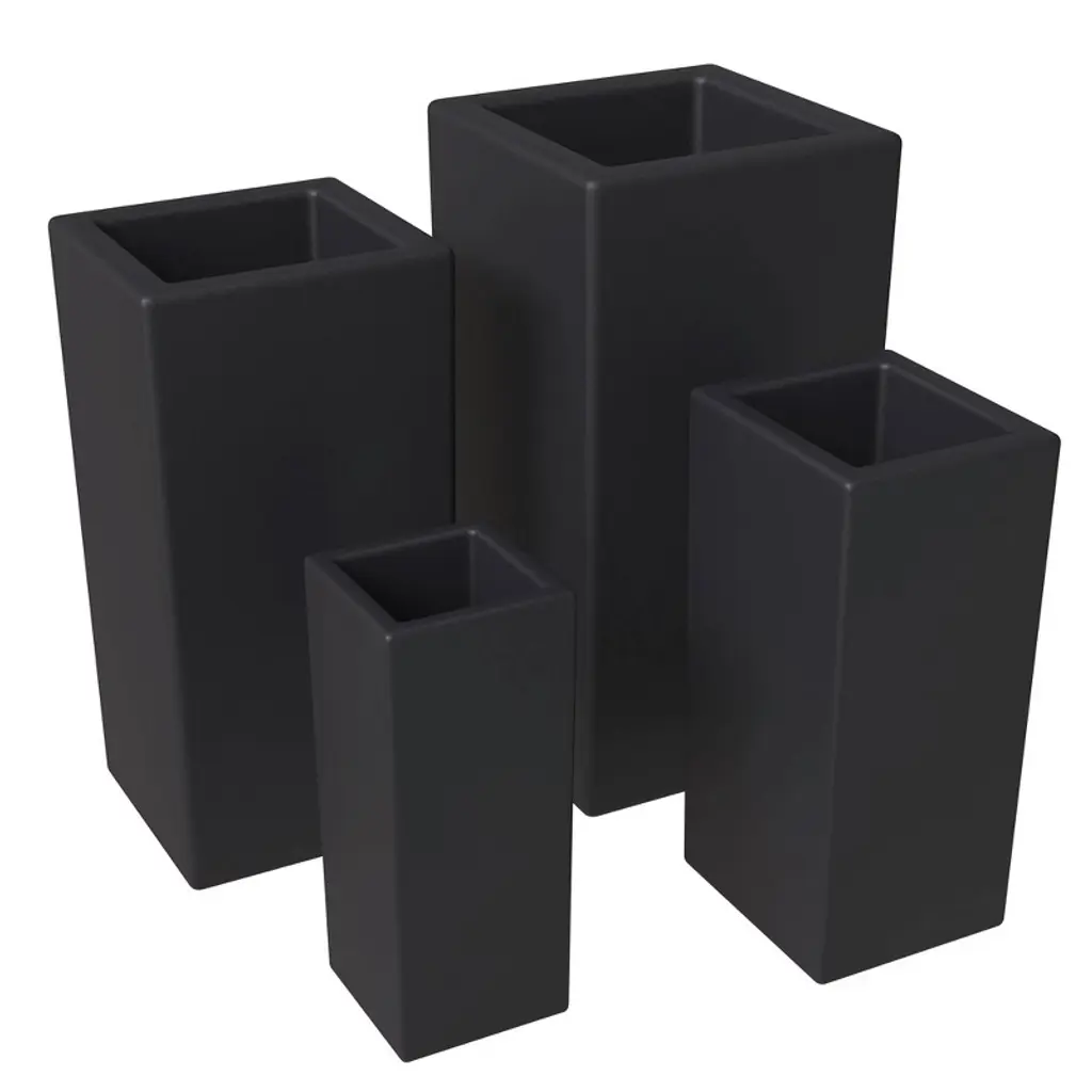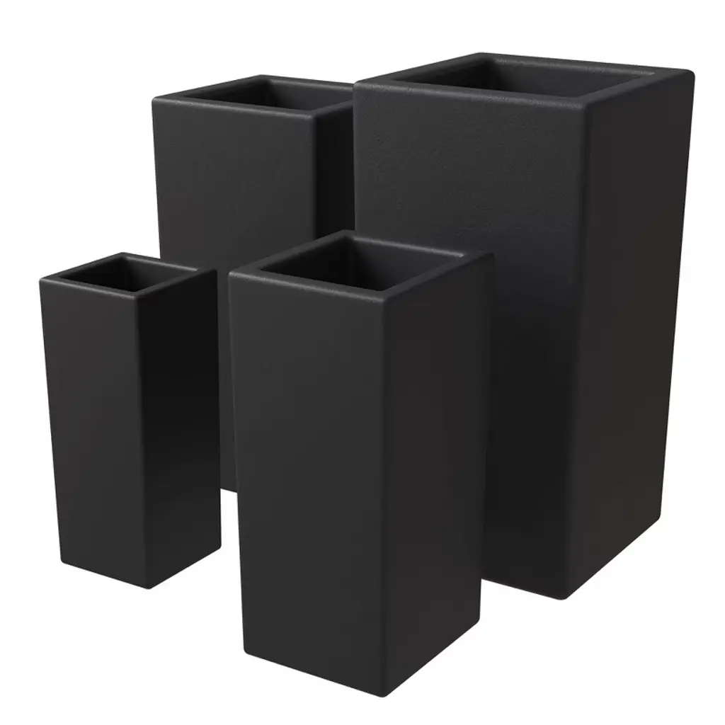 Leisuremod Terra 4-piece Fiberstone And Mgo Clay Planter Set Tall Square Planter Pot For Indoor And Outdoor (Black)