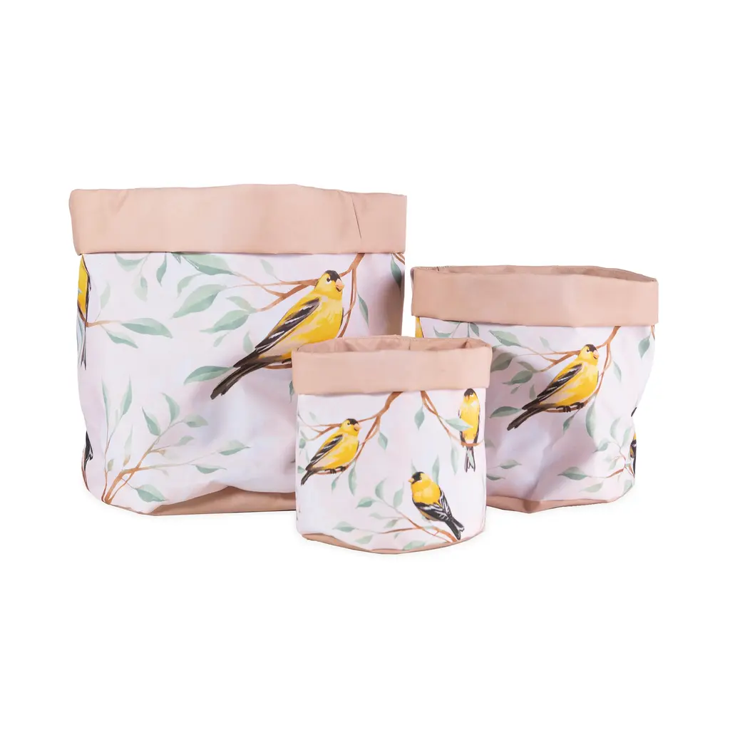 Lined Canvas Planters With Bird Designs, Set Of 3