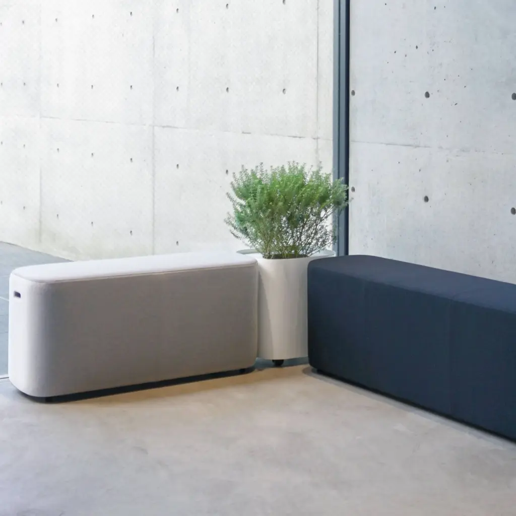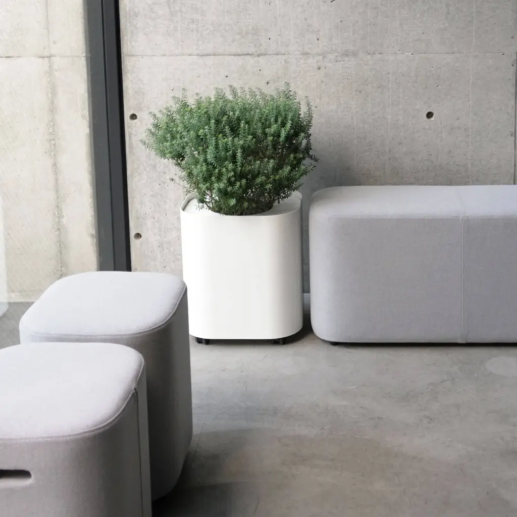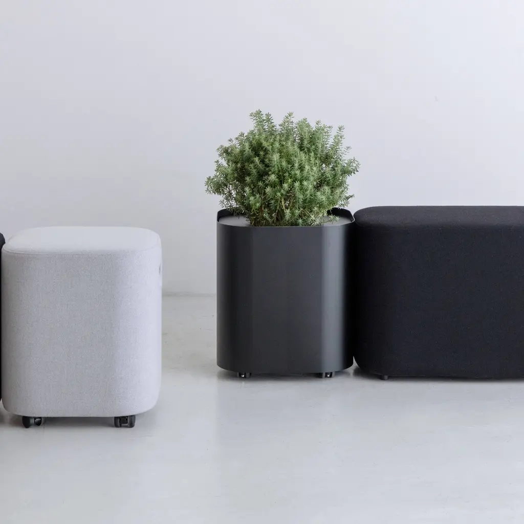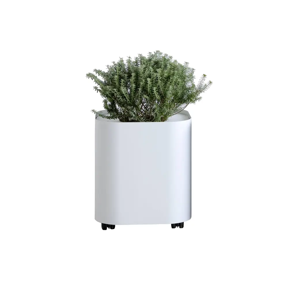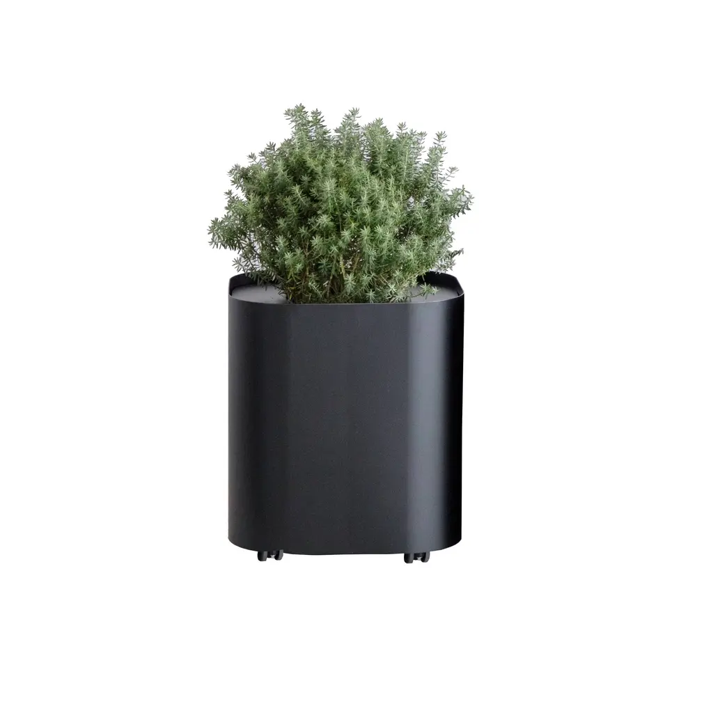 To go with the companion bench and table for public spaces, By Interiors adds a similarly shaped planter from designer Keiji Takeuchi. With the convenience of rolling casters for movability, Loaf is made from powder-coated steel in the familiar round-edged square shape. The planter is equipped with a matching inset steel top with a wide hole for framing the greenery and has small handles at the sides for a casual touch.