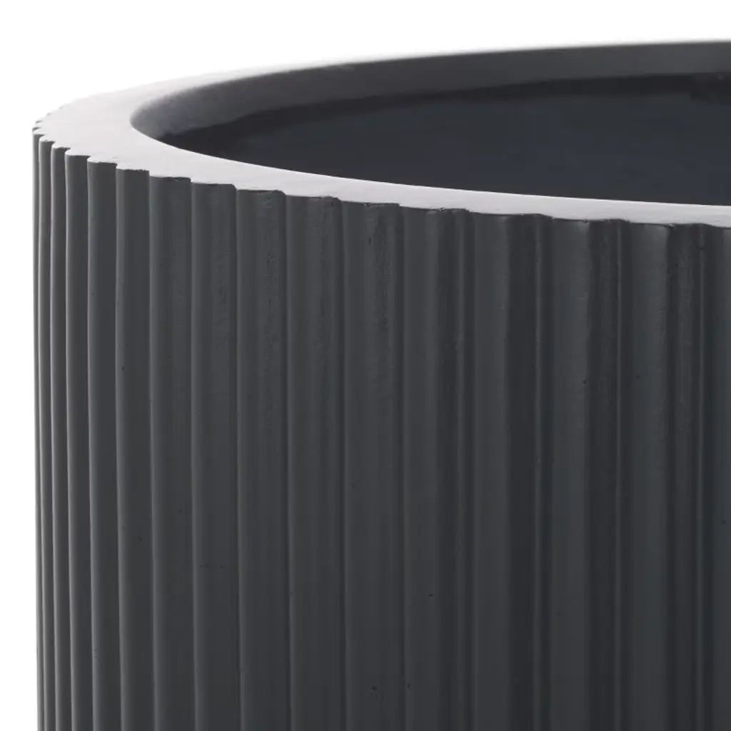 Introducing the Lucca Large Planter Pot - a perfect blend of elegance and durability. Crafted from Ficonstone, this stylish planter brims with sturdiness without compromising the aesthetic appeal. Its sharp black finish effortlessly adds a luxurious touch to your decor, making it an eye-catching centerpiece. The elegant vertical stripes design lends a touch of sophisticated charm, while maintaining an element of simplicity. This planter is more than just a pot, its a testament to your great taste in home decor. Boost the ambiance of your greens with the Lucca Large Planter Pot, where style meets functionality.