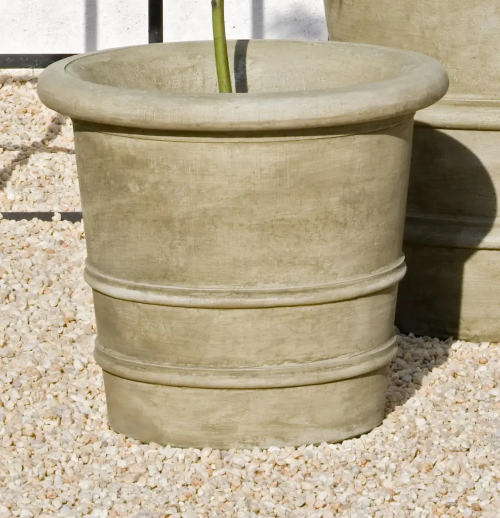 A rimmed planter with two ridges in a Verde finish.