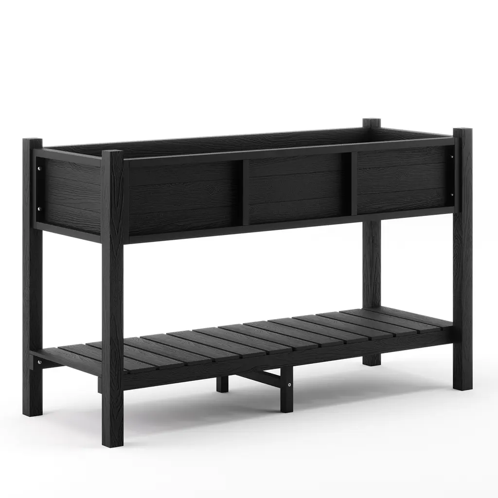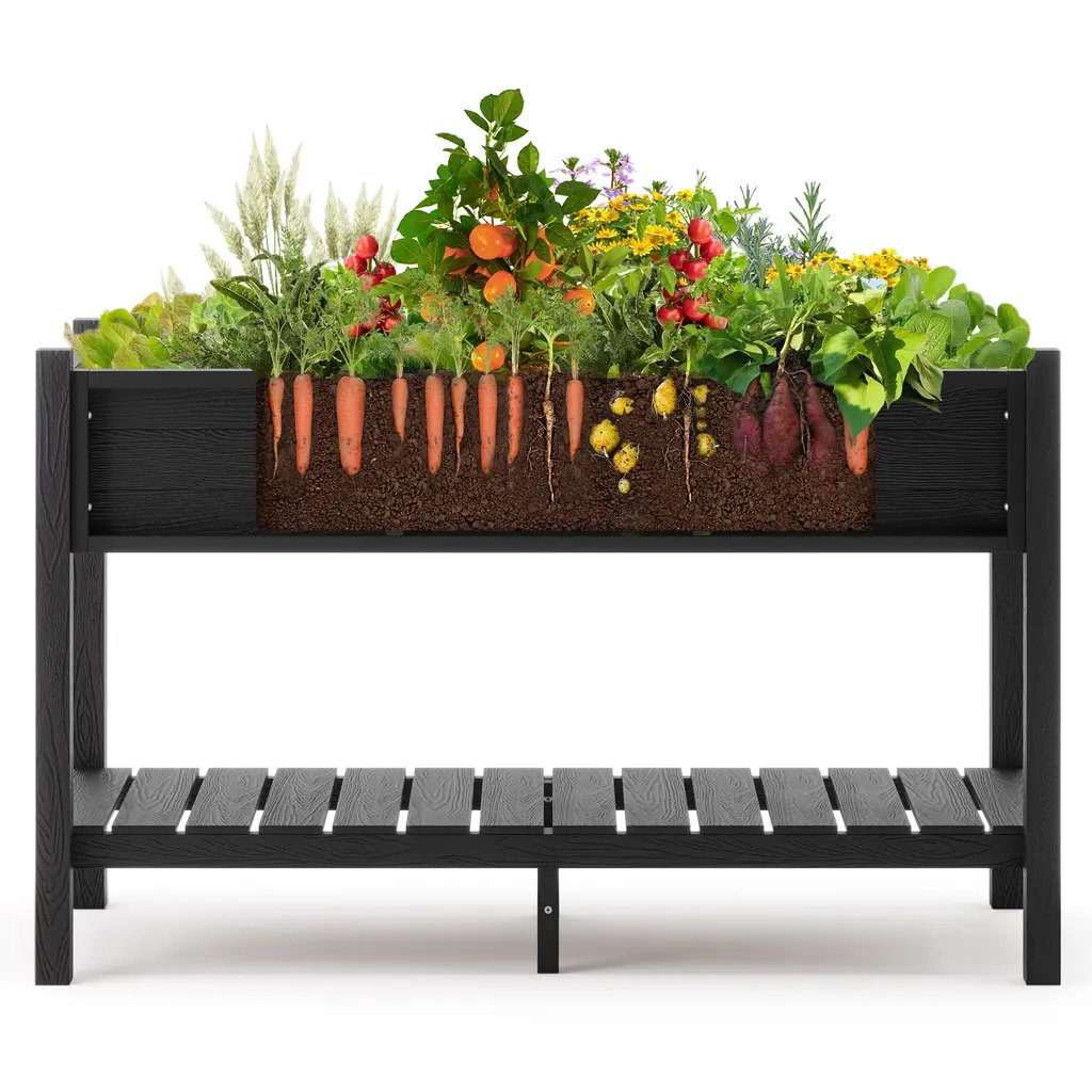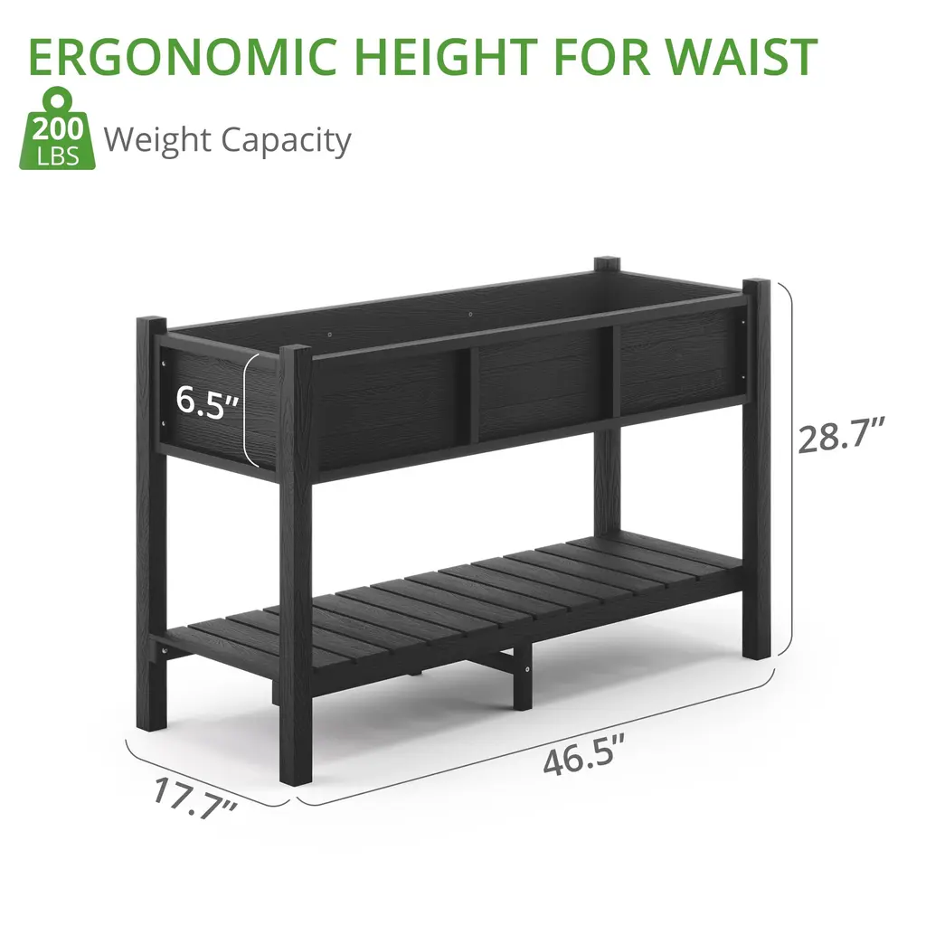 Lue Bona Plastic Raised Garden Bed With Legs Elevated Planter Box For Backyard, Patio, Or Balcony - 46.5"l X 17.7"w X 28.7"h - Black