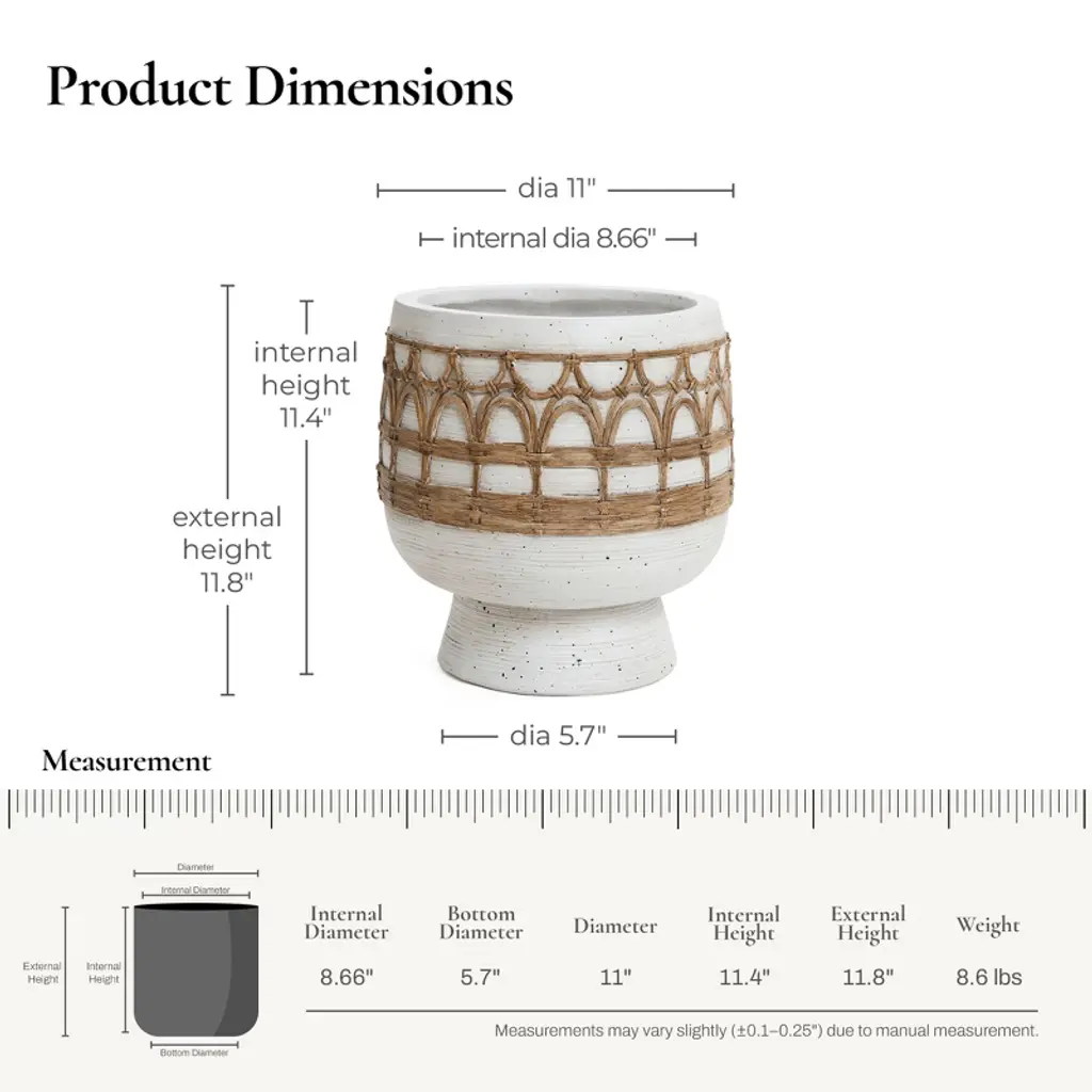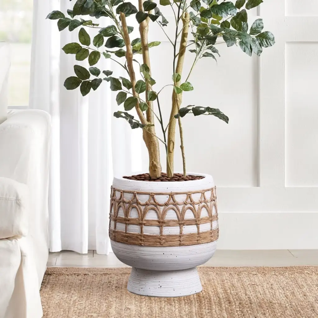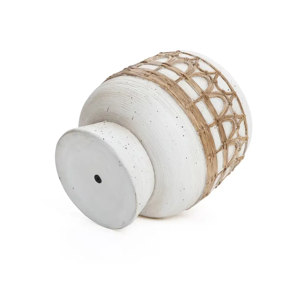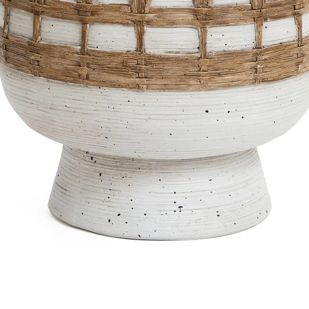 Luxenhome Boho White With Brown Accents 11-inch Round Mgo Planter