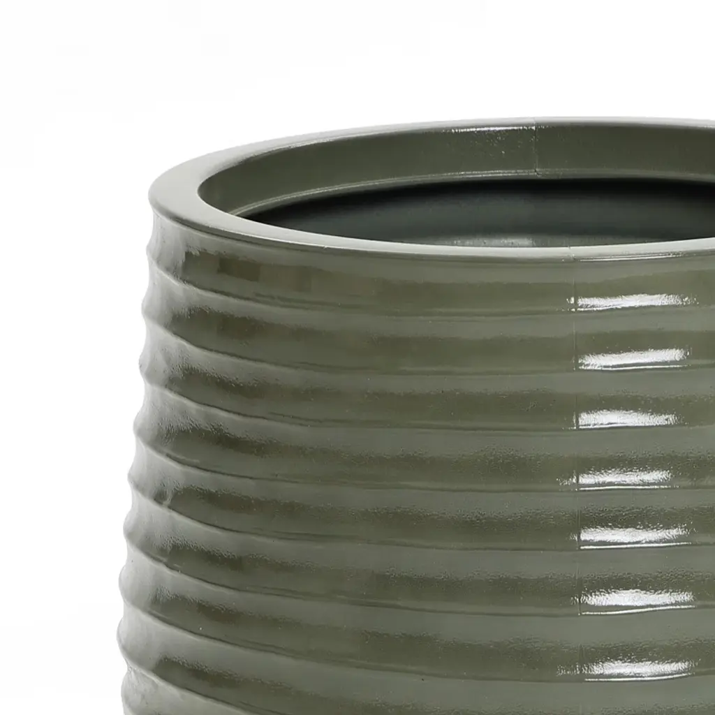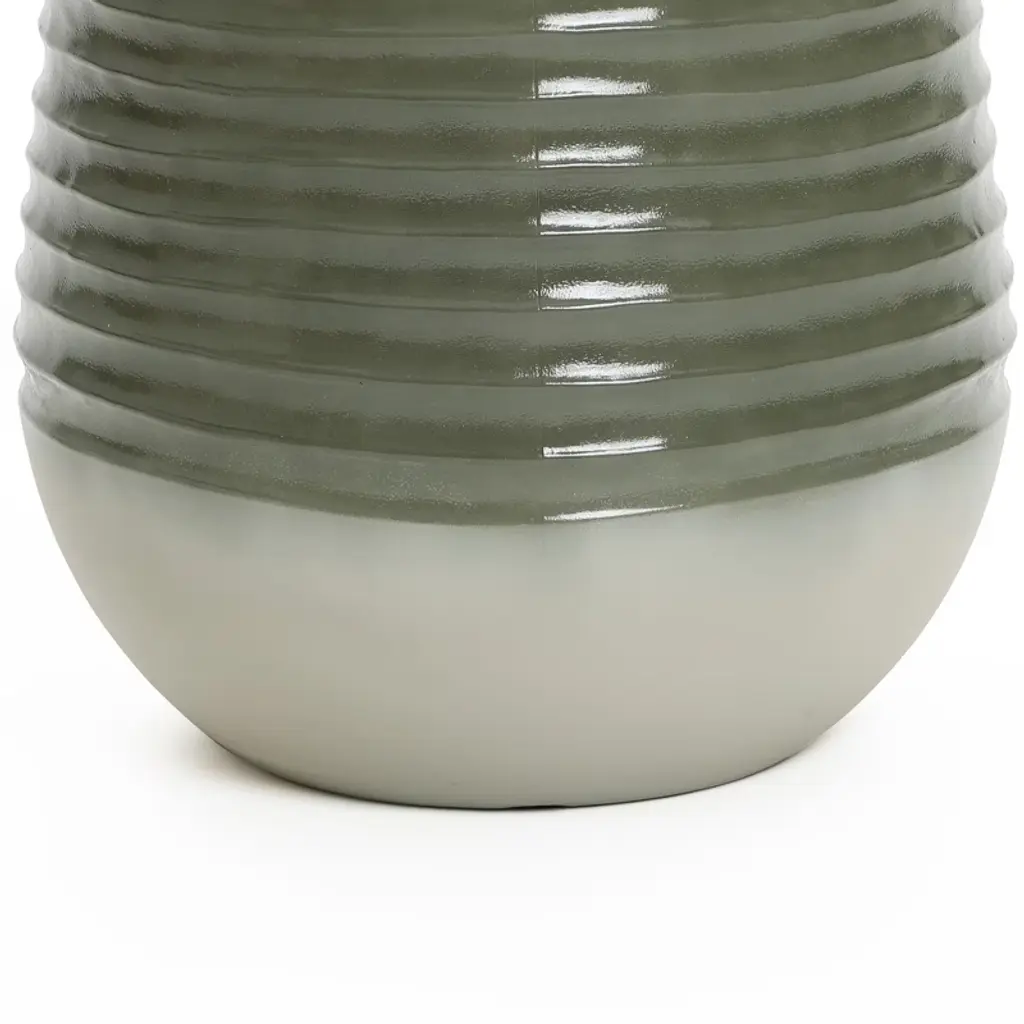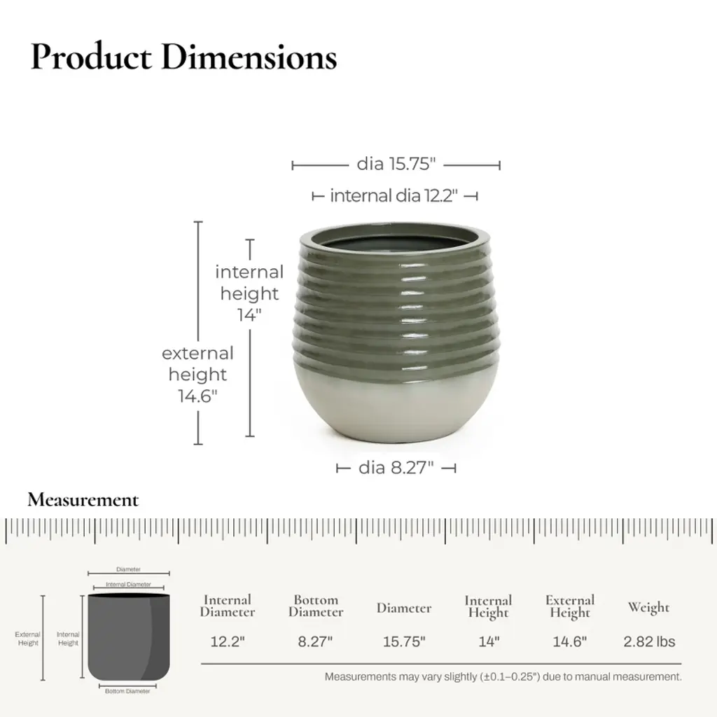 Luxenhome Emerald Ribbed Top With Ivory Bottom 14.6" Tall Resin Round Planter