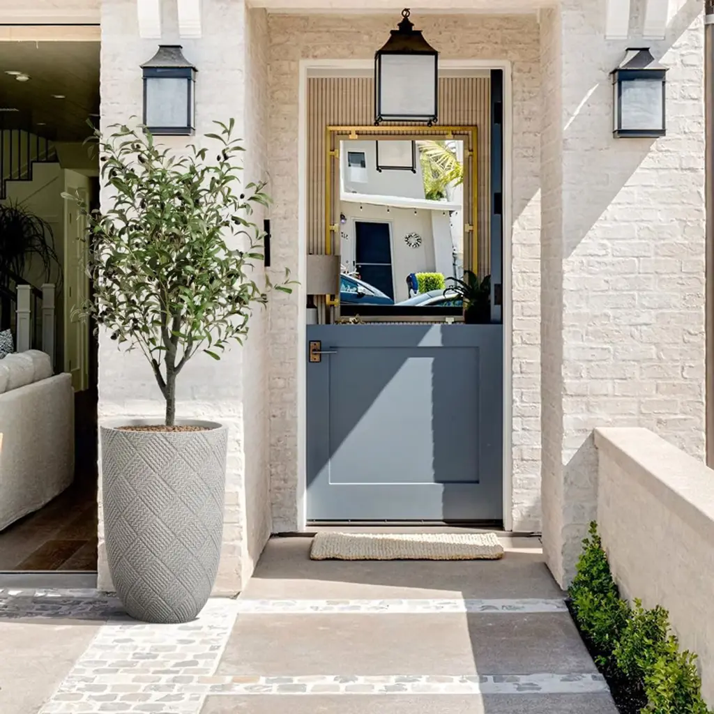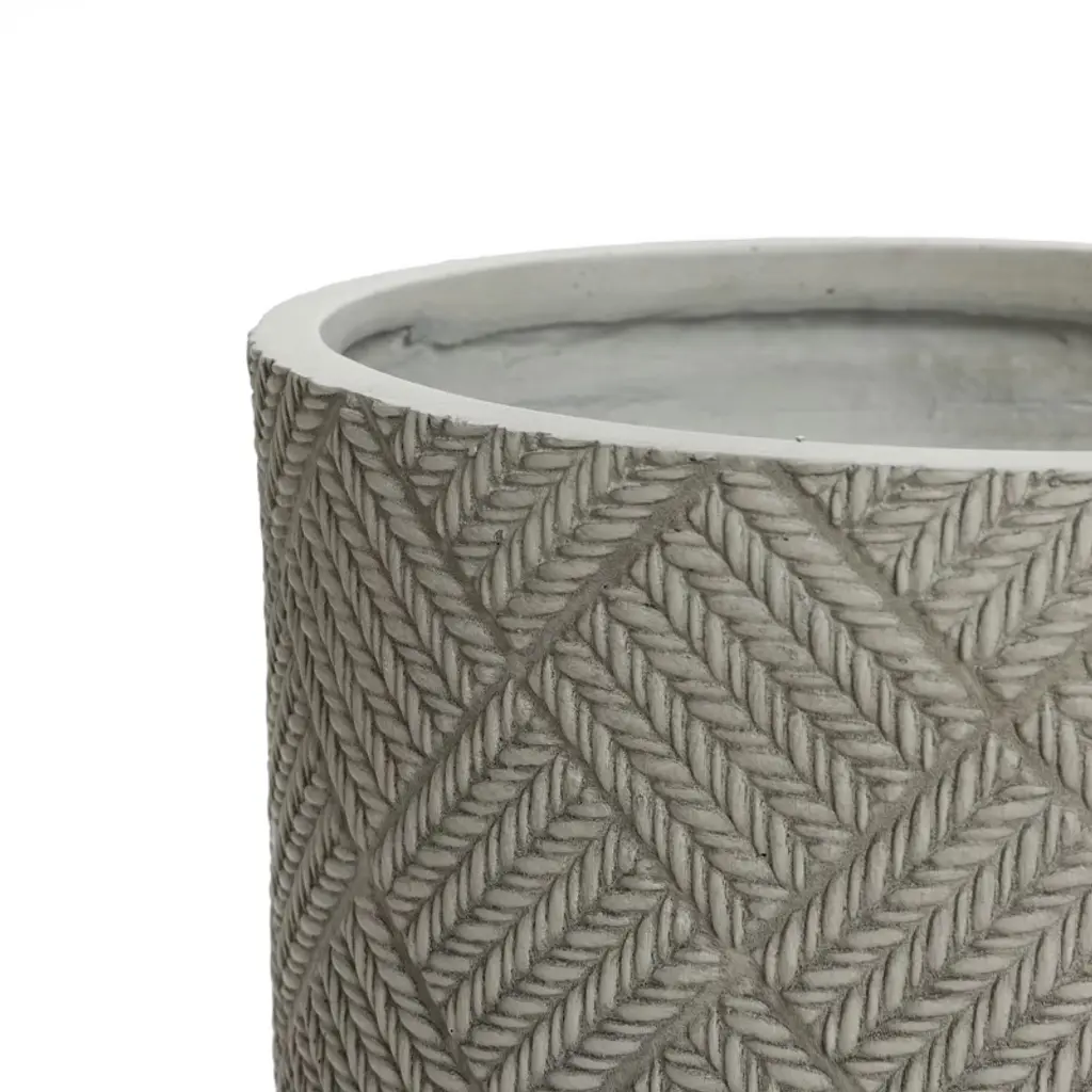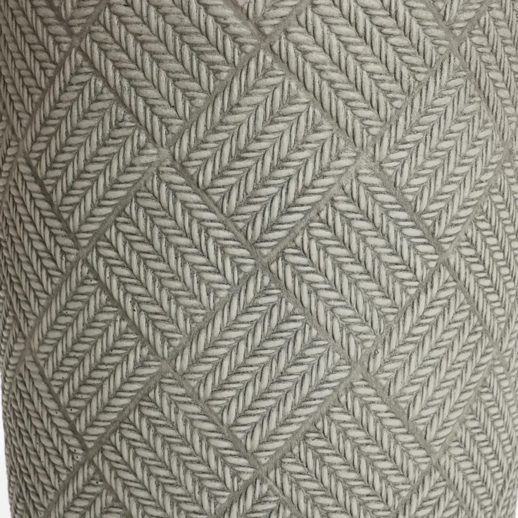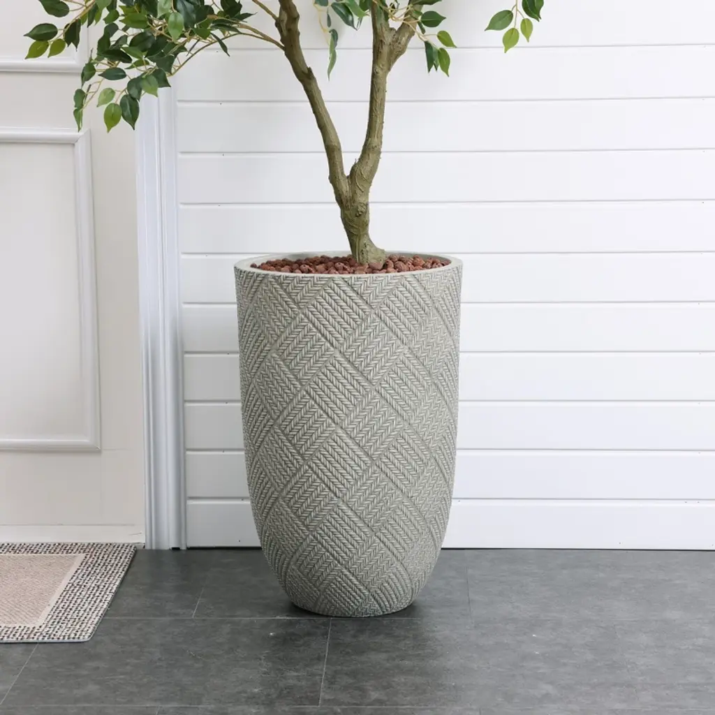 This planter is constructed from durable MgO material, ensuring a sturdy and long-lasting product. Its modern minimalist design features a sophisticated gray glen pattern that seamlessly integrates with clean lines, offering an elegant and understated aesthetic. The planter's body is crafted through a specialized compilation process, resulting in unique, interlocking lines that create a distinctive grid-like texture, adding an artistic element to its appearance. When you touch the planter, you can appreciate its delicate and rich texture. Additionally, it includes a thoughtfully designed drainage hole at the bottom, which effectively prevents water accumulation and supports a healthier growing environment for your plants. Standing at 22.4 inches high, this planter is versatile for both indoor and outdoor use. Whether placed on a balcony, in a living room, or on a patio, it enhances any space with its beauty and charm, offering a delightful addition to your decor.