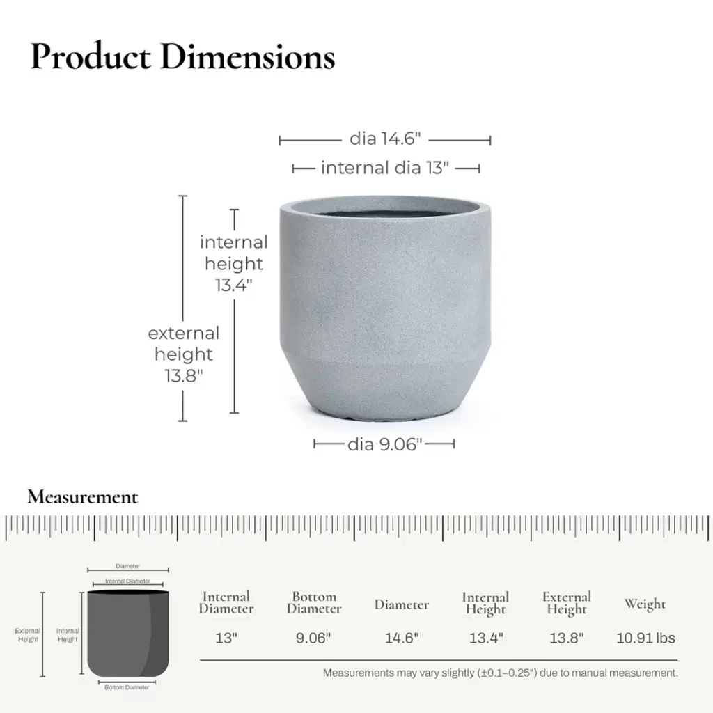 Luxenhome Minimalistic Modern Gray 13.8-inch Tall Round Tapered Mgo Planter