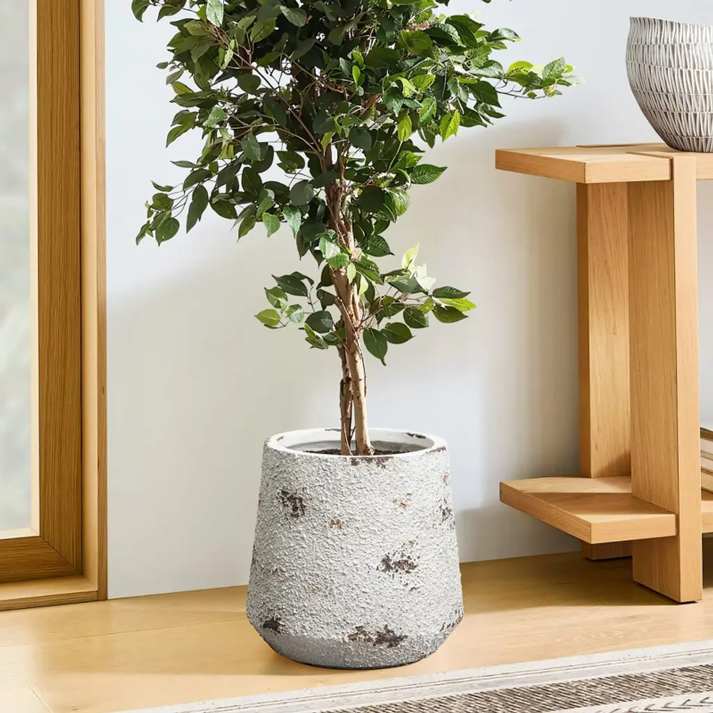 This round planter, featuring a harmonious blend of rustic beige and brown accents, beautifully exemplifies the union of nature and human creativity. Crafted from MgO material, it offers exceptional strength and reliable weather resistance. Its rounded, smooth design, coupled with a carefully finished surface that mimics a vintage rust texture, showcases remarkable craftsmanship while creating an elegant atmosphere that embodies a vintage minimalist style. The skillful blending of beige and brown in this round planter reflects a commitment to a more thoughtful and aesthetically pleasing lifestyle. Equipped with a practical drainage hole and a removable plug, this planter promotes healthy plant growth by facilitating optimal ventilation and moisture management. It serves as a stunning addition to any space, whether in your living room or on your patio, and has the potential to invigorate your environment, adding both vitality and sophistication. Overall, this planter is not only sturdy and reliable but also an artistic piece that elevates your decor with its understated elegance.