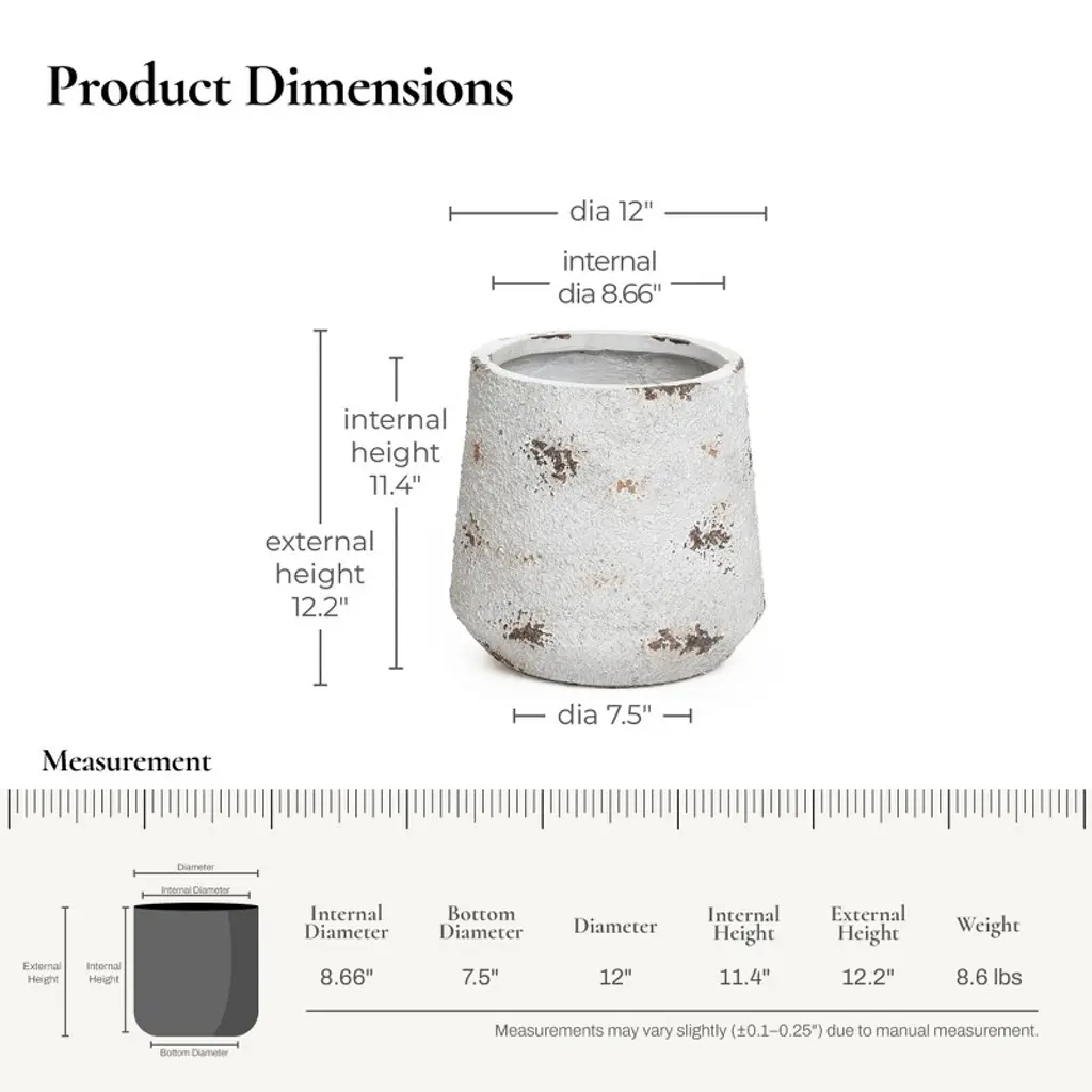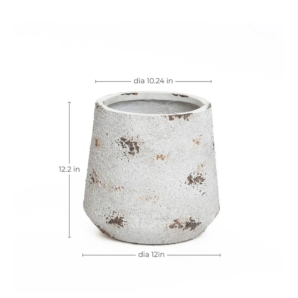 Luxenhome Rustic Off White With Brown Accents 12.2-inch Tall Round Mgo Planter