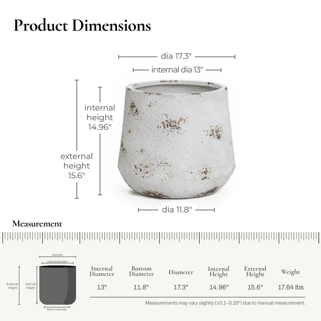 This round planter, featuring a harmonious blend of rustic beige and brown accents, beautifully exemplifies the union of nature and human creativity. Crafted from MgO material, it offers exceptional strength and reliable weather resistance. Its rounded, smooth design, coupled with a carefully finished surface that mimics a vintage rust texture, showcases remarkable craftsmanship while creating an elegant atmosphere that embodies a vintage minimalist style. The skillful blending of beige and brown in this round planter reflects a commitment to a more thoughtful and aesthetically pleasing lifestyle. Equipped with a practical drainage hole and a removable plug, this planter promotes healthy plant growth by facilitating optimal ventilation and moisture management. It serves as a stunning addition to any space, whether in your living room or on your patio, and has the potential to invigorate your environment, adding both vitality and sophistication. Overall, this planter is not only sturdy and reliable but also an artistic piece that elevates your decor with its understated elegance.
