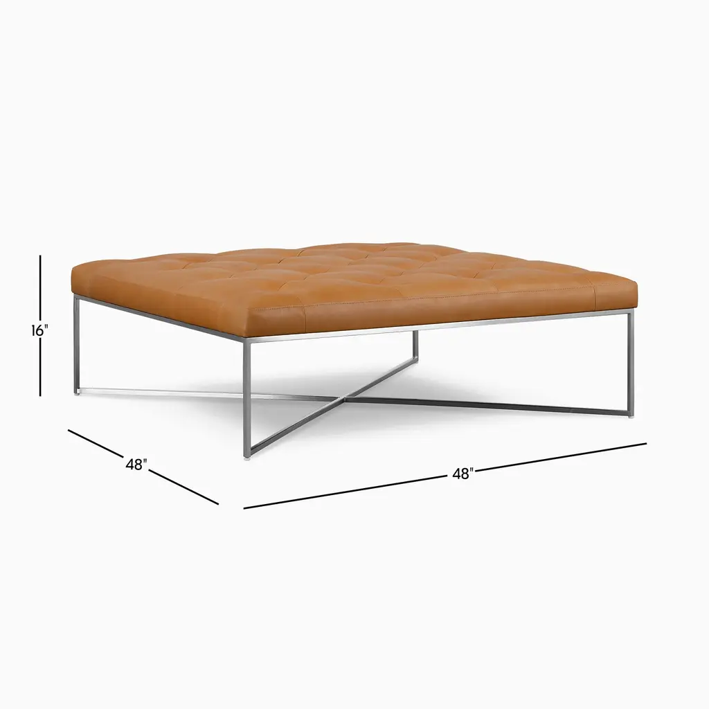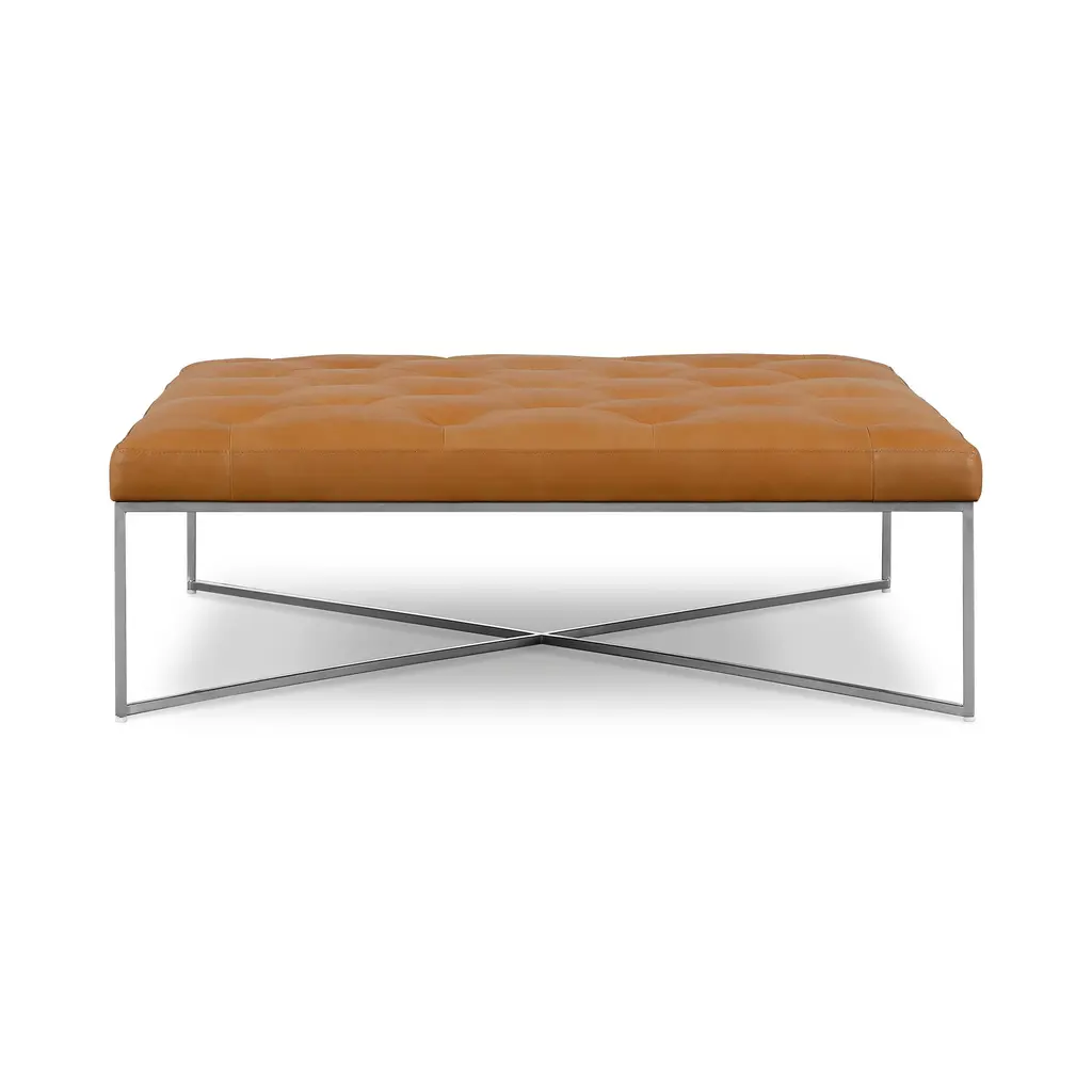 Our Maeve Ottoman can be whatever you need it to be: a footrest, a makeshift coffee table or even an end-of-bed bench. Sophisticated leather contrasted with a steel base creates an industrial accent piece wherever you choose to use it.